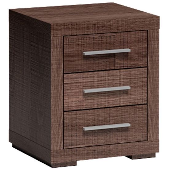 Szafka nocna z kolekcji Vegas wykonana z płyty wiórowej laminowanej to nowoczesny i funkcjonalny moduł. Posiada 3 szuflady, dzięki temu schowamy niezbędne nam podczas wieczornych rytuałów rzeczy, jak na przykład krem do rąk, ulubioną książkę czy ładowarkę. Szafka nocna będzie doskonałym uzupełnieniem aranżacji sypialni z innymi meblami z kolekcji Vegas.