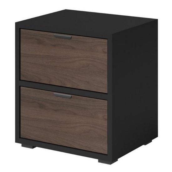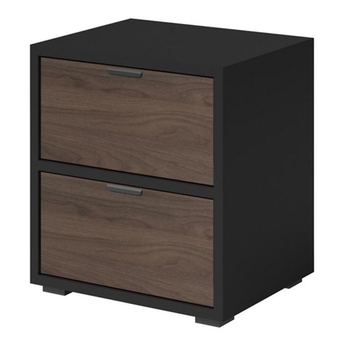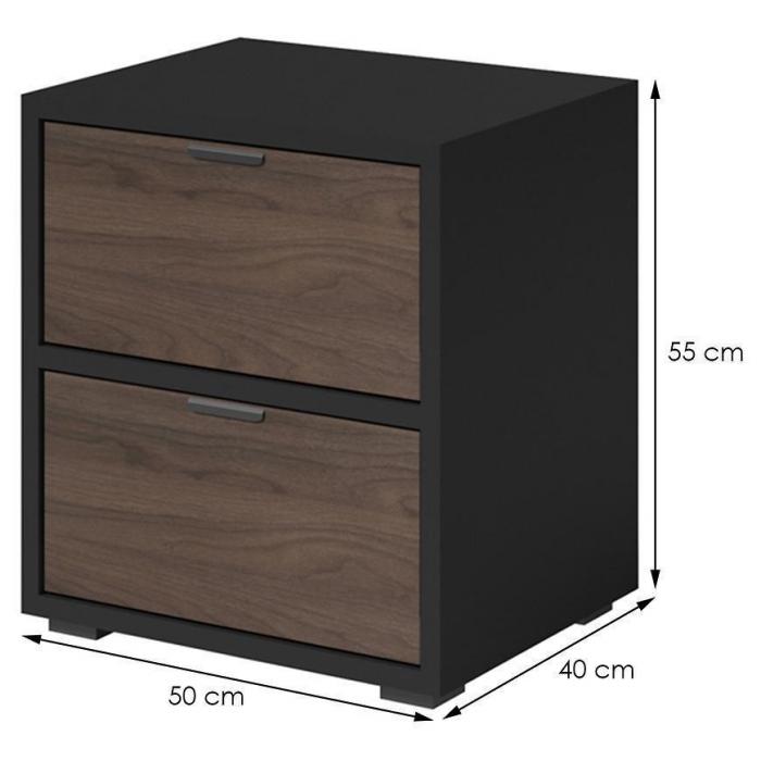 Szafka nocna to niezbędny element wyposażenia każdej sypialni. Szafka z kolekcji Verona świetnie sprawdzi się obok łóżka. Może służyć do przechowywania rzeczy, ale będzie również pełniła funkcję dekoracji. Jest stabilna i wytrzymała. Została wykonana z płyty wiórowej laminowanej w kolorze czarny/orzech, posiada dwie szuflady. Do kompletu można dokupić inne produkty z kolekcji Verona.