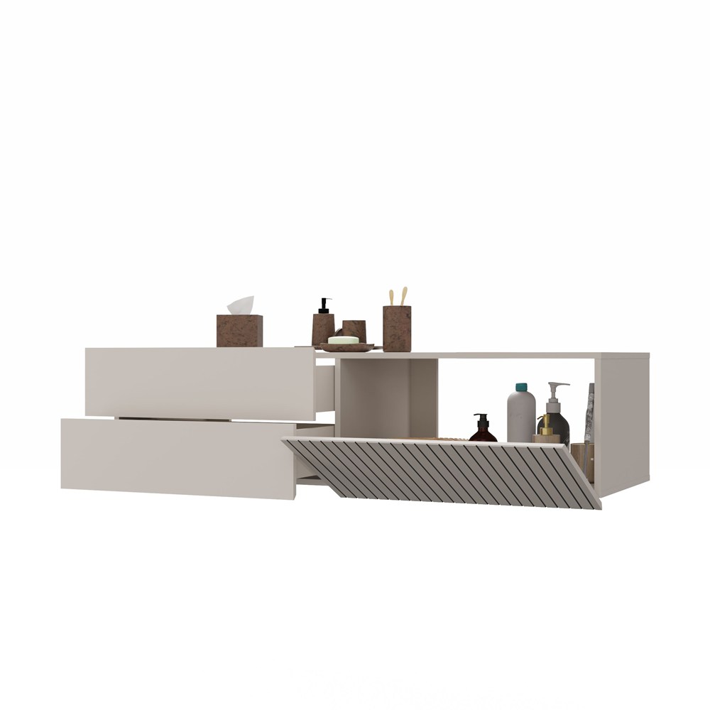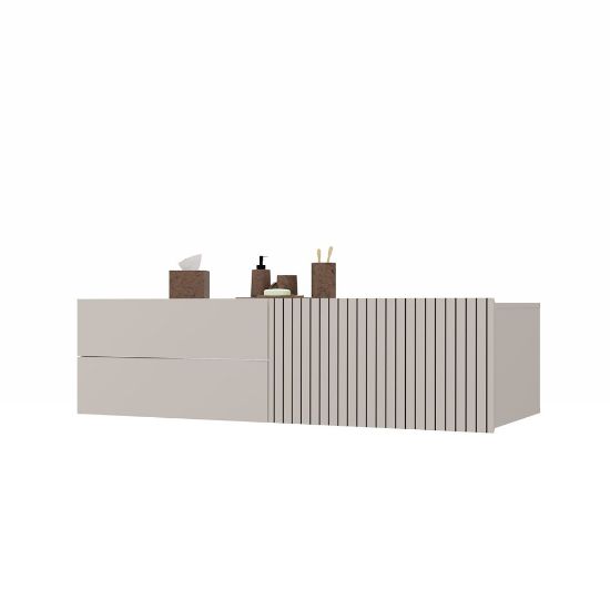 Szafka pod umywalkę Trigo 140 cm – podwieszana szafka łazienkowa kaszmir z ryflowanym frontem