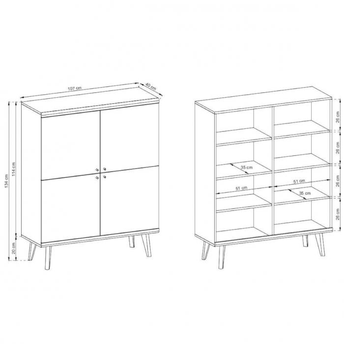 Nowoczesna kolekcja Primo to połączenie elegancji, stylu i funkcjonalności. Białe fronty w połączeniu z drewnianym dębowym korpusem świetnie odnajdą się w nowoczesnych wnętrzach, wpasują się w wiele aranżacji. Dzięki wysokim drewnianym nóżkom meble wydają się być lekkimi, nieprzytłaczającymi bryłami. Komoda posiada drzwiczki dzięki czemu ma łatwy dostęp do wnętrza. Jakość wykonania zapewnia solidność i stabilność konstrukcji. Do kompletu można dokupić inne produkty z kolekcji co z pewnością pozwoli funkcjonalnie urządzić Twoje pomieszczenie, zachowując przy tym styl i elegancję.