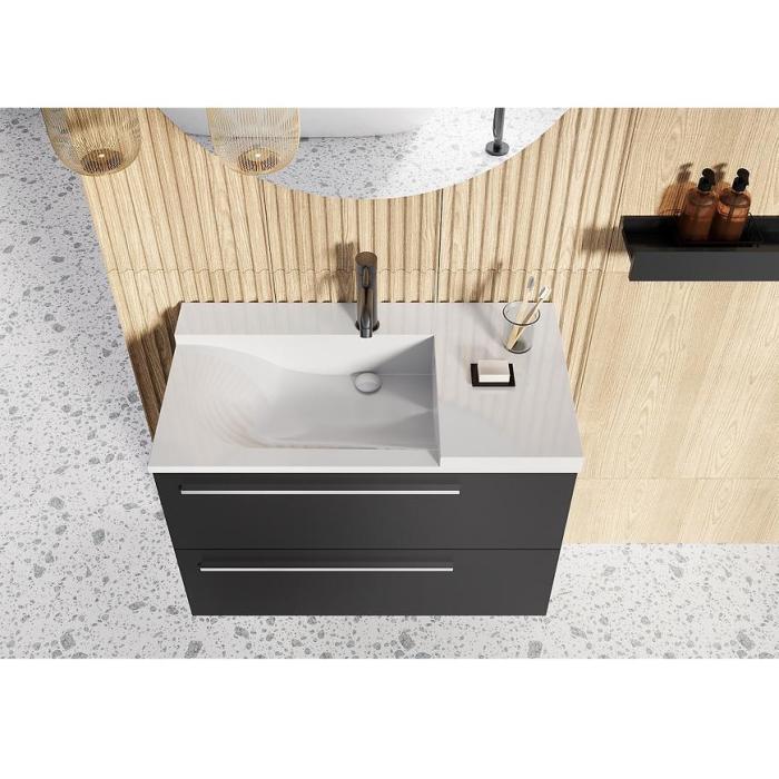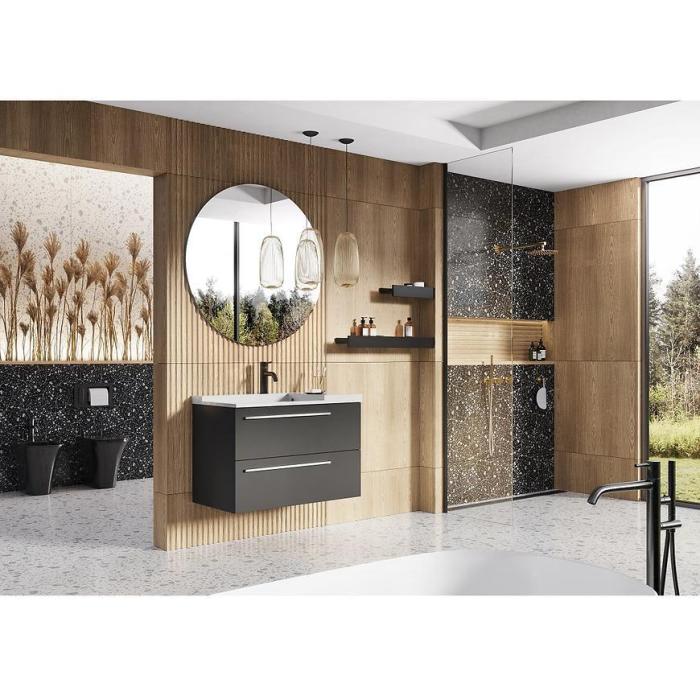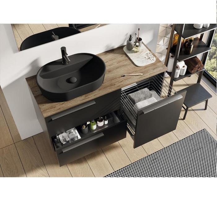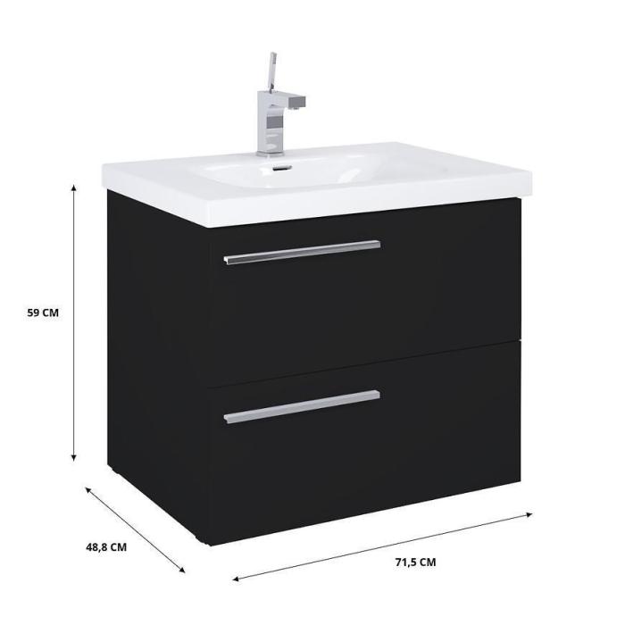 Kolekcja mebli łazienkowych Royal to eleganckie meble, które świetnie wpiszą się w nowoczesne wnętrza. Meble wykonane są z wysokiej jakości materiałów - płyty wiórowej pokrytej lakierem w kolorze czarnym matowym. Meble dodatkowo wyposażone są w system samodomykania co zwiększa komfort użytkowania.
