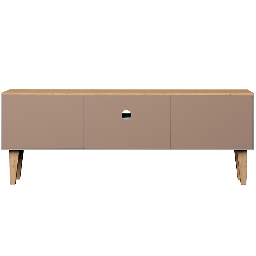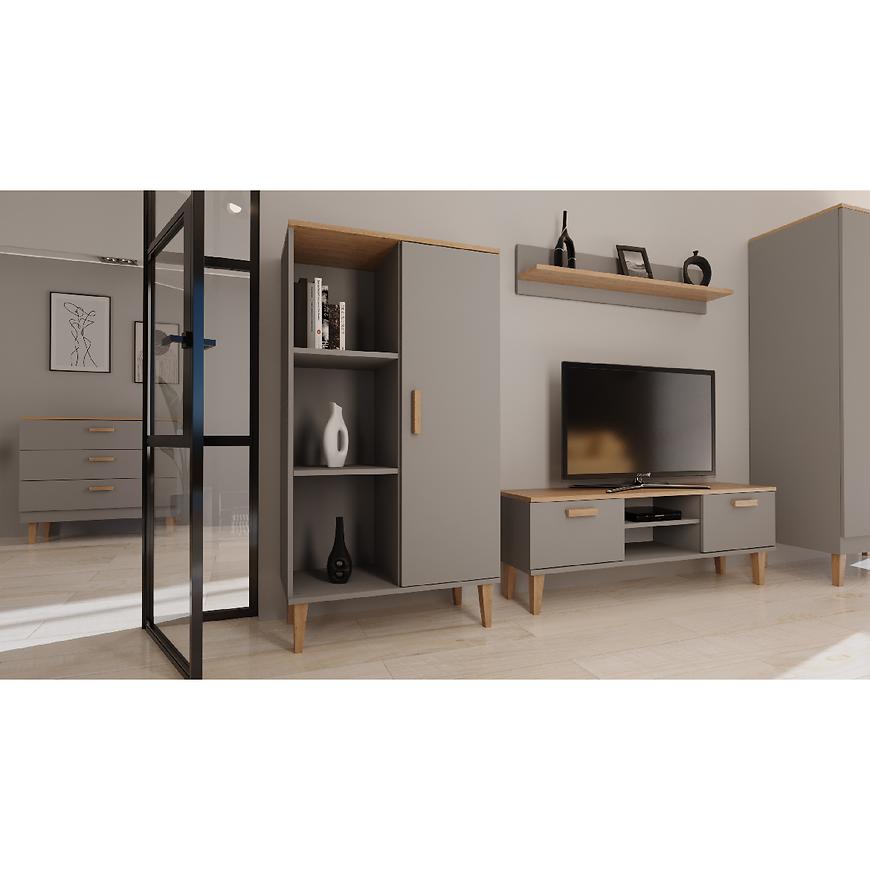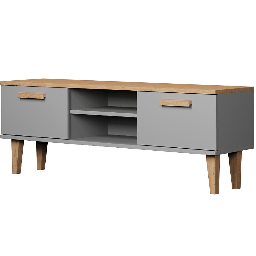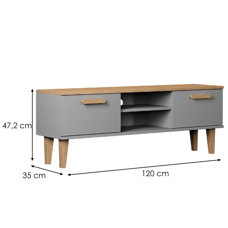 Szafka RTV 120 Denver Szary Chinchilla/Hikora to nowoczesny i stylowy mebel przeznaczony do salonu. Mierzy 47,2 cm wysokości, 120 cm szerokości i 35 cm głębokości, zapewniając wygodną przestrzeń do przechowywania sprzętu RTV. Fronty i korpus wykonane są z matowej płyty wiórowej laminowanej w eleganckim kolorze szary chinchilla z akcentami hikora, co nadaje meblowi modny, nowoczesny wygląd. Szafka posiada dwudrzwiową konstrukcję, nie zawiera szuflad, waży 20,06 kg i wymaga samodzielnego montażu. Idealna propozycja do każdego salonu, łącząca funkcjonalność z estetyką.