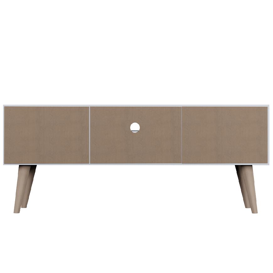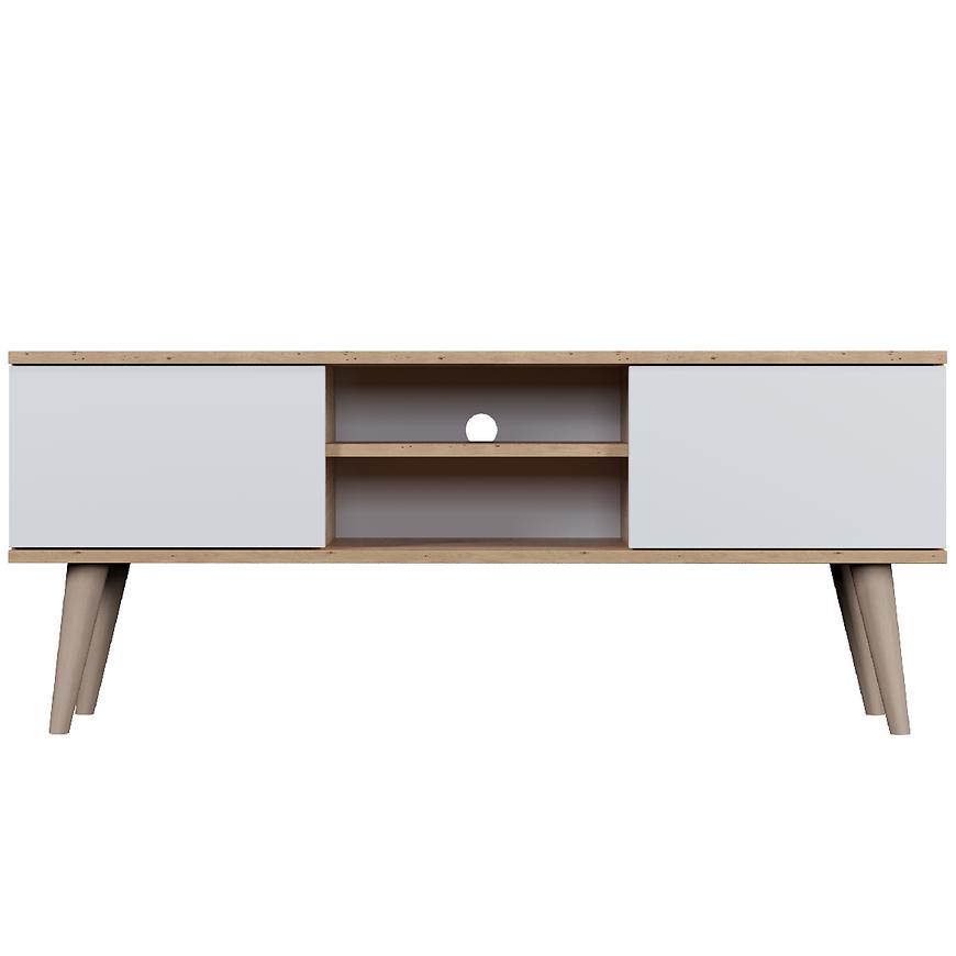 Szafka RTV 120 Toronto Artisan/Biały to stylowy i funkcjonalny mebel, który doskonale odnajdzie się w nowoczesnych aranżacjach wnętrz. Korpus w modnym dekorze artisan przyjemnie kontrastuje z matowymi, białymi frontami, nadając całości lekkości i świeżości. Dzięki kompaktowej szerokości 120 cm szafka świetnie sprawdzi się zarówno w mniejszych, jak i średnich salonach, oferując praktyczne miejsce do przechowywania sprzętu RTV i innych domowych akcesoriów. Solidna konstrukcja z laminowanej płyty wiórowej zapewnia trwałość i łatwość w utrzymaniu czystości. Model wyposażony jest w dwudrzwiowy schowek oraz estetyczne matowe wykończenie, co podkreśla jego nowoczesny charakter. To trafny wybór dla osób ceniących prostotę, funkcjonalność i subtelny design.