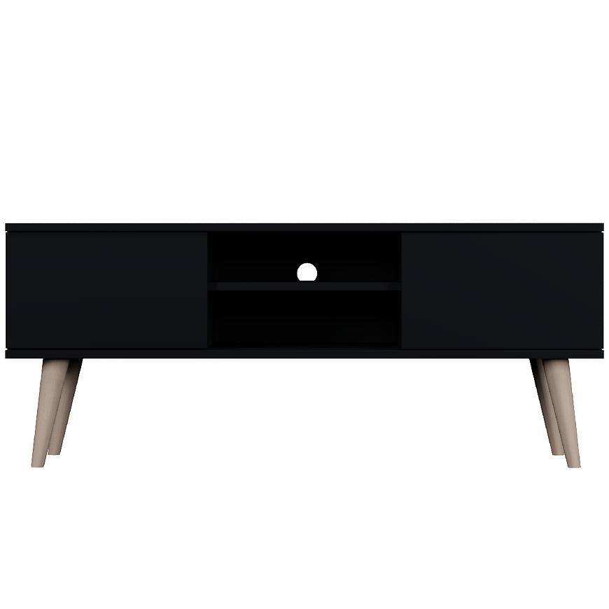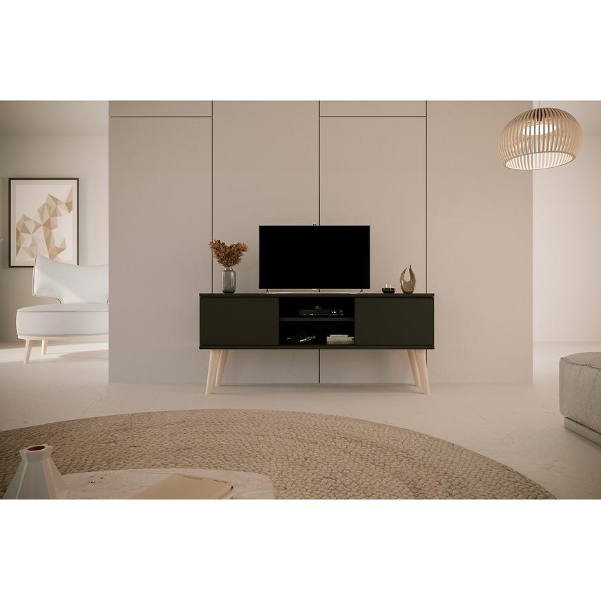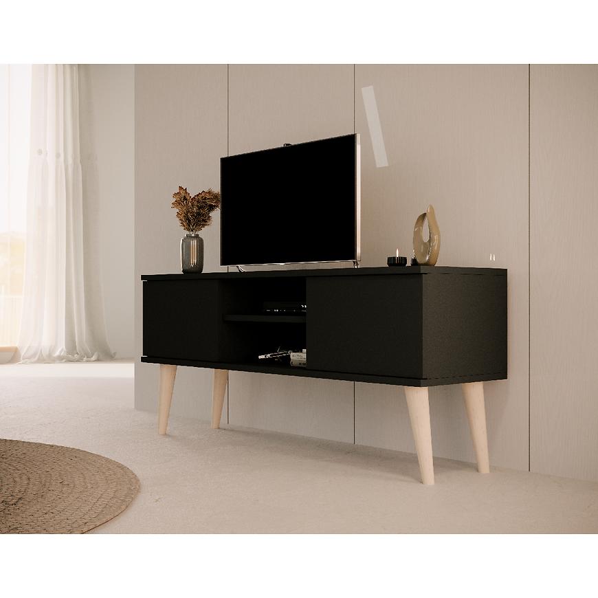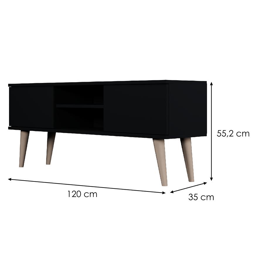 Szafka RTV 120 Toronto w kolorze czarnym to nowoczesna i kompaktowa propozycja do mniejszych przestrzeni, która zachwyca minimalistycznym designem i eleganckim wykończeniem. Wykonana z laminowanej płyty wiórowej, posiada matowe fronty i korpus, co nadaje jej stylowy i ponadczasowy wygląd. Jej wymiary 120 × 55,2 × 35 cm sprawiają, że świetnie sprawdzi się zarówno w salonie, jak i w pokoju dziennym, oferując funkcjonalną przestrzeń na sprzęt RTV oraz niezbędne akcesoria. Dwudrzwiowa konstrukcja umożliwia wygodne przechowywanie i porządkowanie wnętrza. Mebel waży 20,6 kg i wymaga samodzielnego złożenia. Szafka RTV Toronto Czarny to idealny wybór dla osób ceniących prostotę, nowoczesny styl i praktyczne rozwiązania.