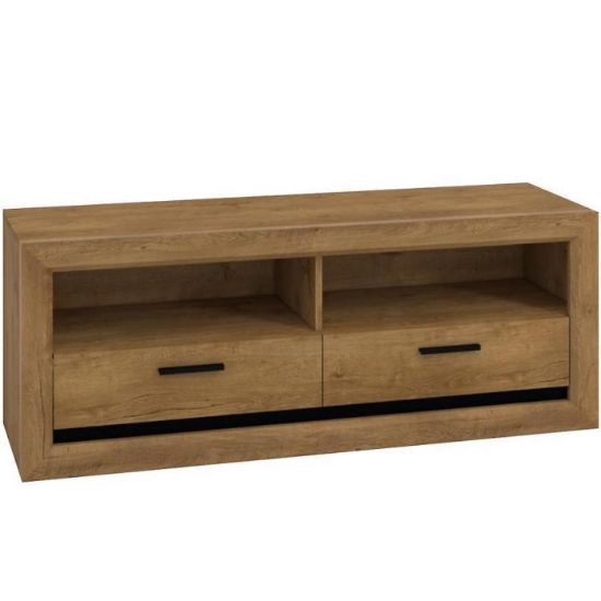 - Szafka RTV z dwoma szufladami i półkami to idealne miejsce na telewizor, konsolę czy inne urządzenia multimedialne. Szuflady umożliwiają przechowywanie płyt DVD czy gier.