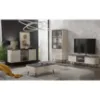 Model oferuje przestronną półkę na sprzęt RTV oraz pojemne zamykane szafki, zapewniające praktyczne miejsce do przechowywania. Solidna konstrukcja i staranne wykończenie sprawiają, że Marly 13 Kashmir/Szary Kamień to nie tylko stylowy, ale również trwały wybór do każdego salonu.