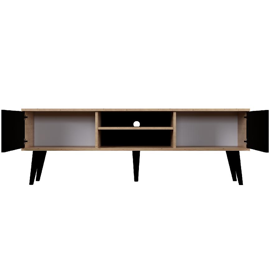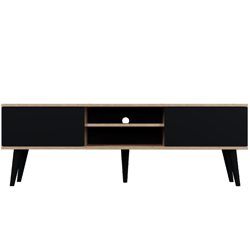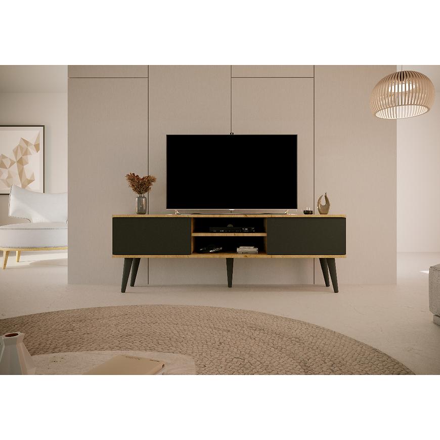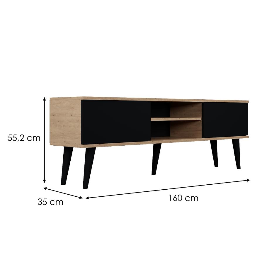 Szafka RTV 160 Toronto w eleganckim połączeniu artisan i czerni to nowoczesny mebel, który wyróżnia się stylowym kontrastem kolorów. Fronty w matowej czerni idealnie komponują się z jasnym, drewnopodobnym korpusem w odcieniu artisan, nadając wnętrzu wyjątkowy charakter. Wykonana z laminowanej płyty wiórowej, szafka jest trwała i łatwa w pielęgnacji. Z wymiarami 160 × 55,2 × 35 cm oferuje praktyczną przestrzeń do przechowywania sprzętu RTV, a dwudrzwiowa konstrukcja pomaga utrzymać porządek. Mebel waży 25,26 kg i wymaga złożenia. Model z kolekcji TORONTO to funkcjonalny i stylowy element wyposażenia każdego nowoczesnego salonu.