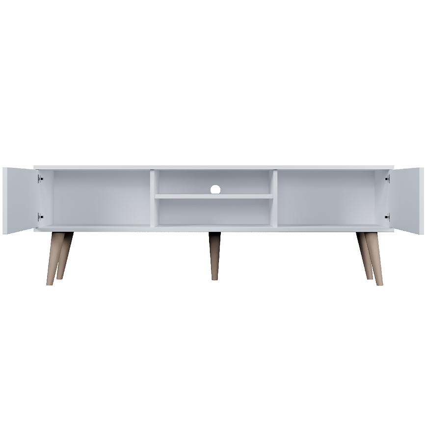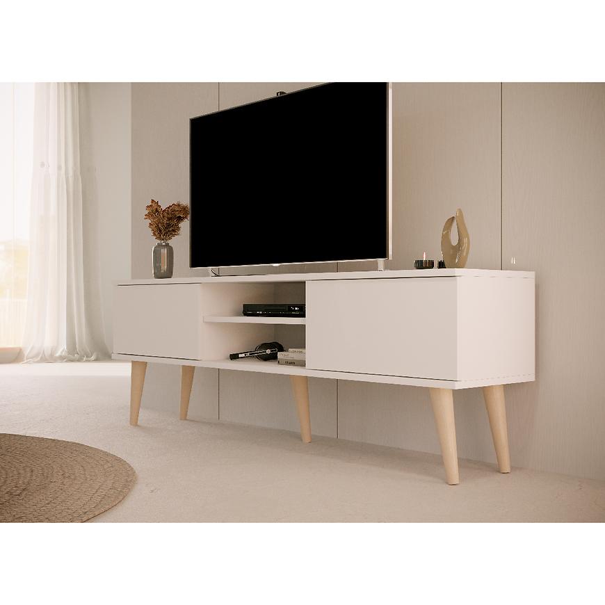 Szafka RTV 160 Toronto w kolorze białym to nowoczesny i minimalistyczny mebel, który świetnie wpisze się w jasne i przestronne wnętrza salonu. Wykonana z laminowanej płyty wiórowej o matowym wykończeniu, zarówno fronty, jak i korpus, zapewniają trwałość oraz łatwość w utrzymaniu czystości. Wymiary 160 × 55,2 × 35 cm dają odpowiednią powierzchnię do ustawienia sprzętu RTV oraz przechowywania niezbędnych akcesoriów. Dwudrzwiowa konstrukcja pozwala na estetyczne schowanie urządzeń i uporządkowanie przestrzeni. Lekka i praktyczna szafka waży 25,26 kg i wymaga samodzielnego montażu. Toronto Biały to doskonały wybór dla osób ceniących prostotę, funkcjonalność i świeży, nowoczesny design.