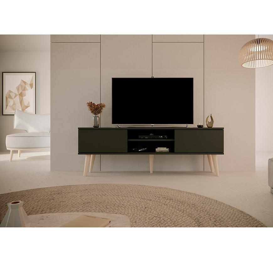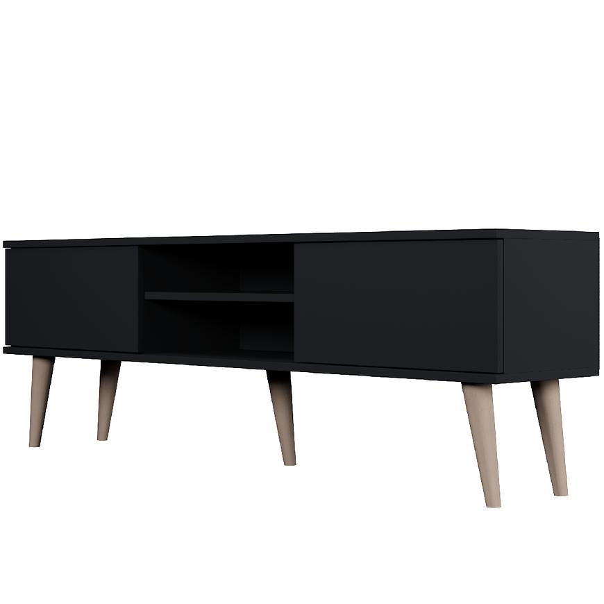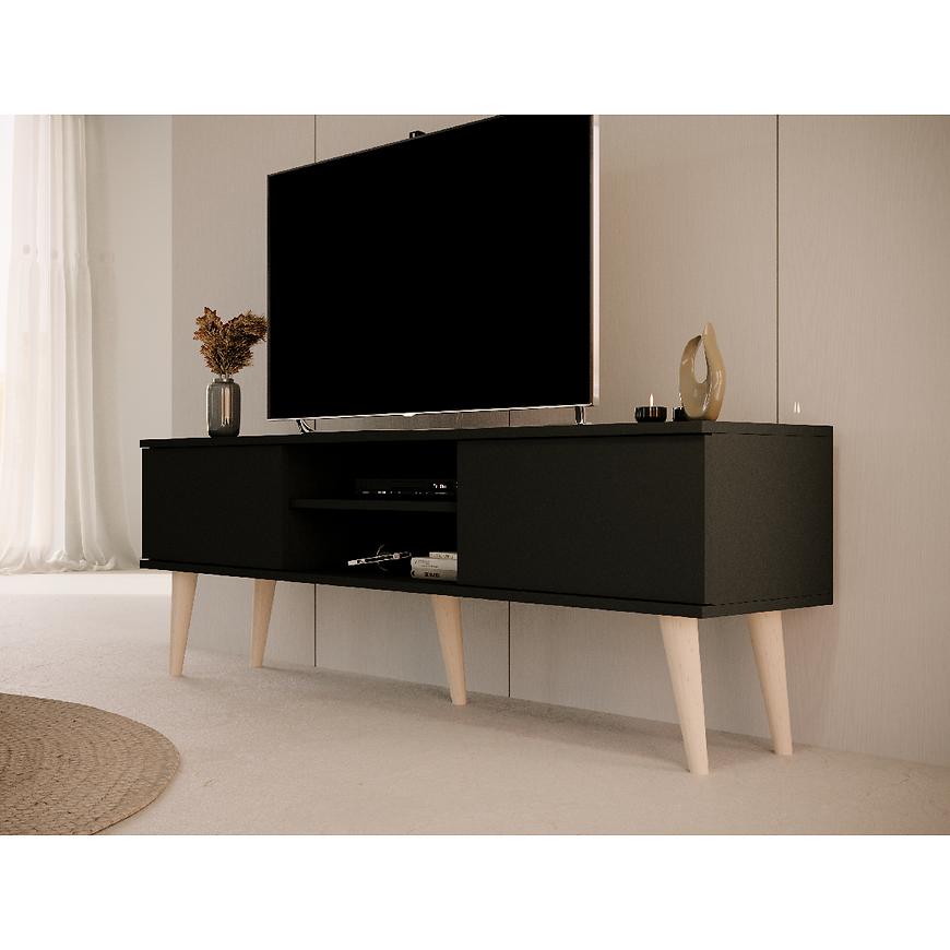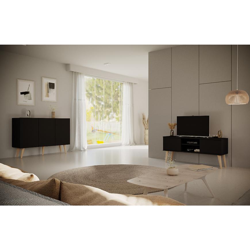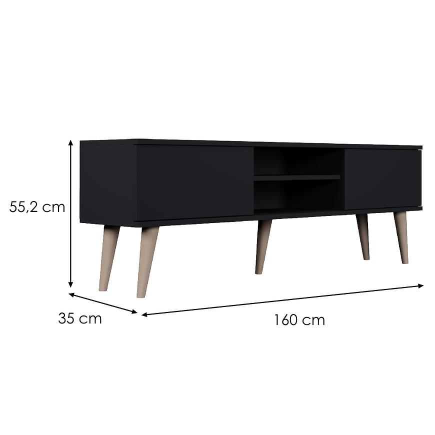 Szafka RTV Toronto w eleganckim, czarnym kolorze to idealne rozwiązanie dla miłośników nowoczesnego designu. Jej matowe wykończenie nadaje wnętrzu subtelnej elegancji, a solidna konstrukcja wykonana z laminowanej płyty wiórowej gwarantuje trwałość i stabilność. Szafka należy do kolekcji TORONTO, łącząc w sobie funkcjonalność z minimalistycznym stylem.