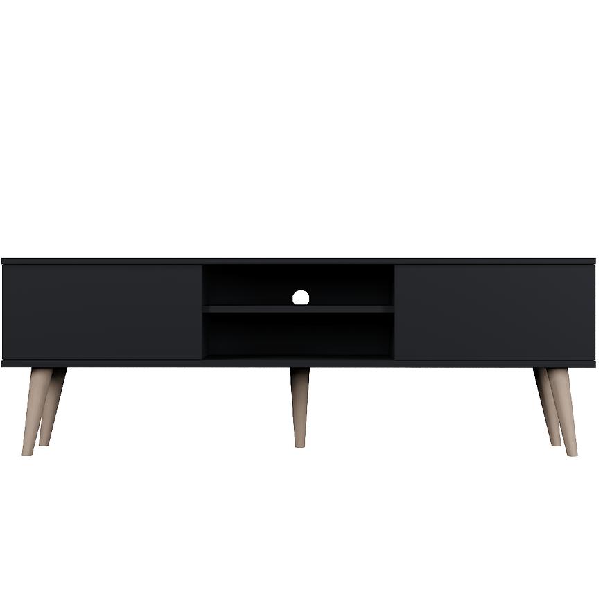 Dwudrzwiowa bryła z jedną otwartą półką pozwala wygodnie przechowywać sprzęt RTV oraz inne akcesoria, utrzymując porządek w salonie. Produkt wymaga samodzielnego montażu, co pozwala na łatwe dopasowanie do przestrzeni domowej. Szafka RTV Toronto to praktyczne i stylowe uzupełnienie każdego nowoczesnego wnętrza.