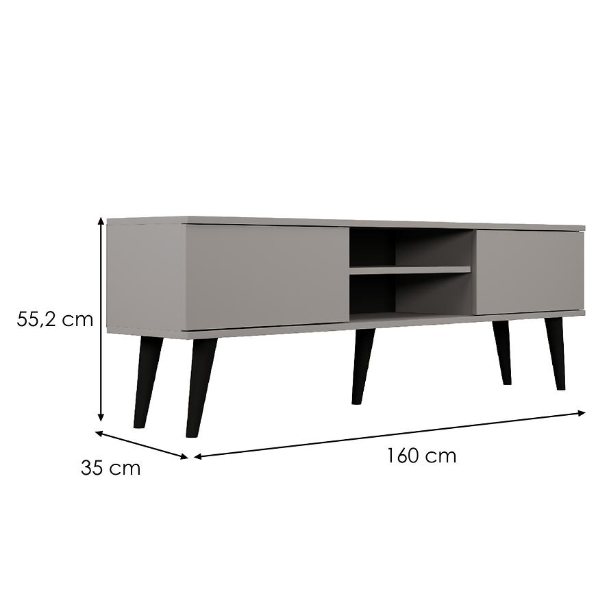 Szafka RTV 160 Toronto w modnym odcieniu szary chinchilla to idealny wybór do nowoczesnego salonu, który ceni sobie styl i funkcjonalność. Wykonana z laminowanej płyty wiórowej, zarówno fronty, jak i korpus posiadają matowe wykończenie, które dodaje meblowi elegancji i ułatwia utrzymanie czystości. Kompaktowe wymiary 160 × 55,2 × 35 cm zapewniają odpowiednią przestrzeń na sprzęt RTV oraz drobne akcesoria, a dwudrzwiowa konstrukcja pozwala na schludne przechowywanie. Szafka waży 25,26 kg i wymaga samodzielnego montażu. Toronto Szary Chinchilla to praktyczny i stylowy mebel, który doskonale wpisze się w każde nowoczesne wnętrze.
