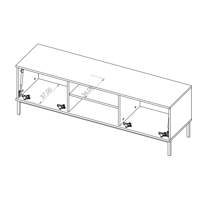 W skład systemu wchodzą następujące bryły: komoda 2D3S, komoda 4S, ława 60, ława 80, regał, szafka RTV 1D, szafka RTV 2D, szafka wisząca oraz witryna wysoka.