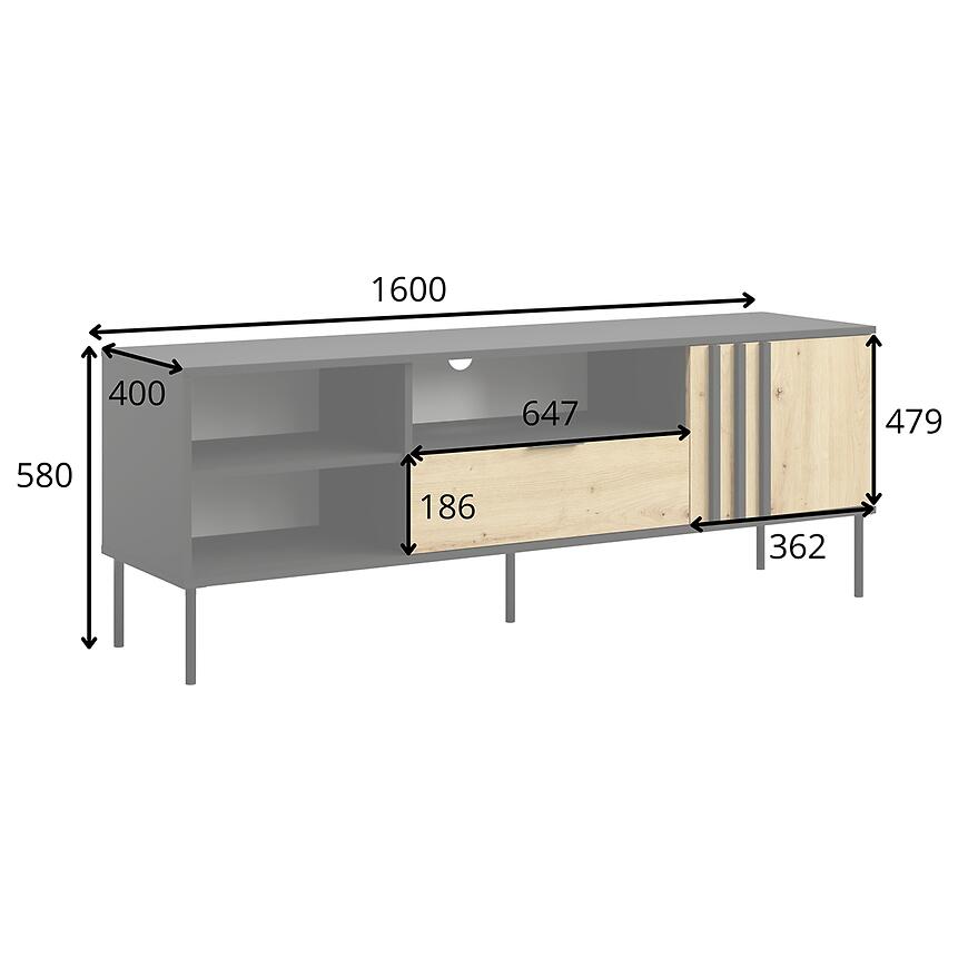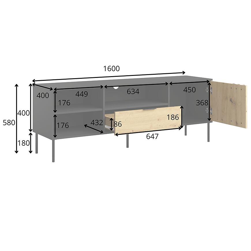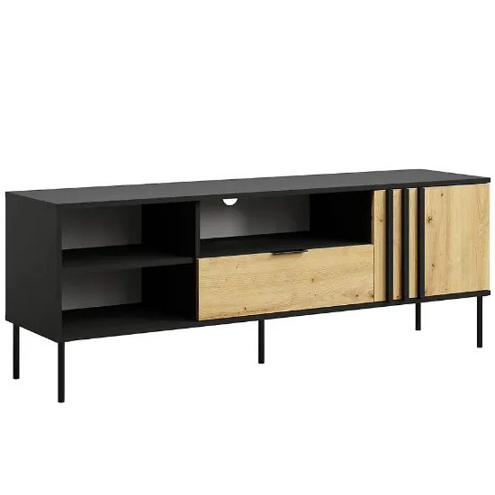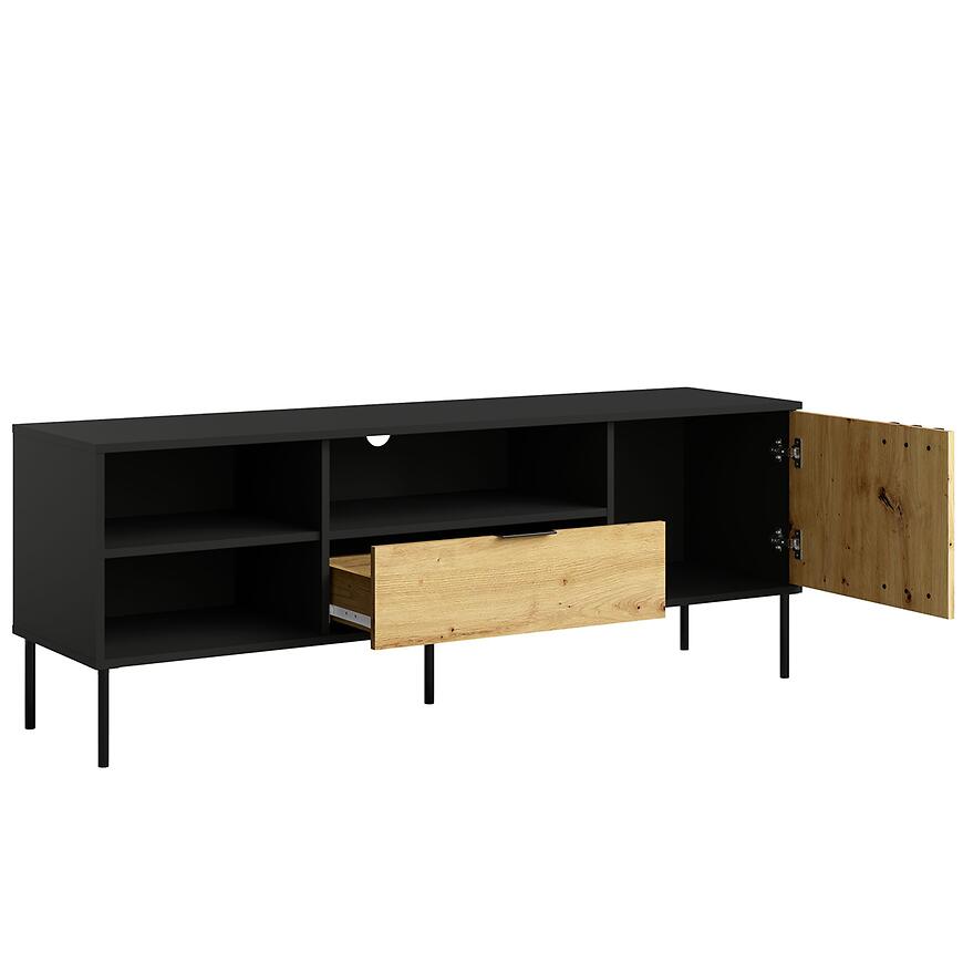 Szafka RTV Rimini 08 czarna / dąb artisan – nowoczesna szafka pod telewizor 160 cm