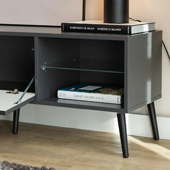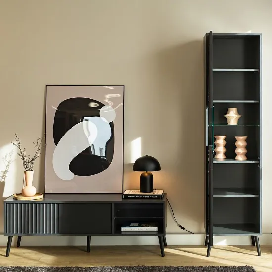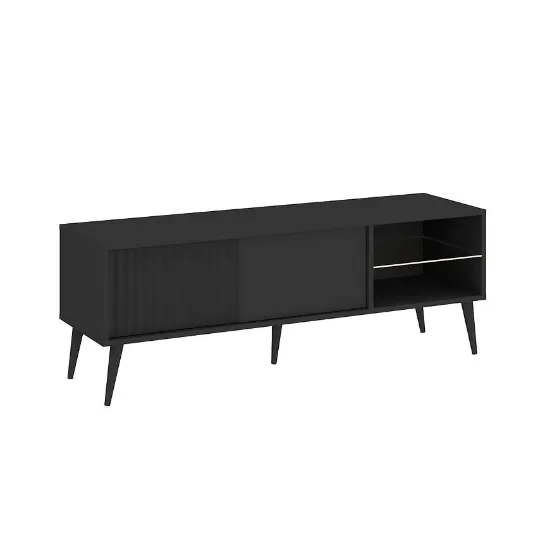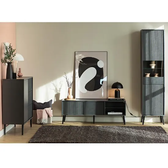 Szafka RTV Barcelona to doskonałe połączenie elegancji i praktycznych rozwiązań do nowoczesnych wnętrz. Wykonana z trwałej płyty wiórowej laminowanej oraz MDF, charakteryzuje się matowym wykończeniem, które nadaje jej stylowy i minimalistyczny wygląd. Doskonale sprawdzi się jako centrum multimedialne w salonie, oferując miejsce na telewizor, dekoder, konsolę czy inne akcesoria.