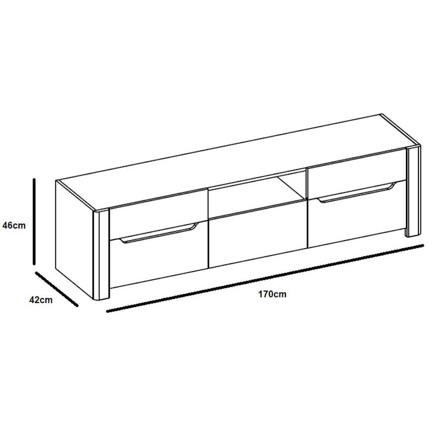 Duża powierzchnia użytkowa obejmuje pojemną szufladę na akcesoria, otwartą półkę na dekoder lub odtwarzacz oraz dodatkowe przestrzenie do przechowywania – wszystko zaprojektowane z myślą o wygodzie użytkowania i estetyce. Mebel doskonale wkomponuje się w nowoczesne wnętrza, tworząc spójną całość z innymi elementami kolekcji DESJO.