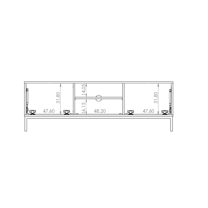W skład systemu wchodzą następujące bryły: komoda 2D3S, komoda 4S, ława 60, ława 80, regał, szafka RTV 1D, szafka RTV 2D, szafka wisząca oraz witryna wysoka.