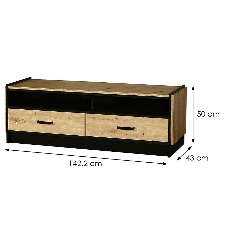 Szafka RTV Karia jest wyposażona w dwie pojemne szuflady, co sprawia, że jest doskonałym rozwiązaniem do przechowywania różnych akcesoriów, pilotów, lub innych drobnych przedmiotów. To także idealne miejsce na organizację kabli i urządzeń związanych z telewizorem.