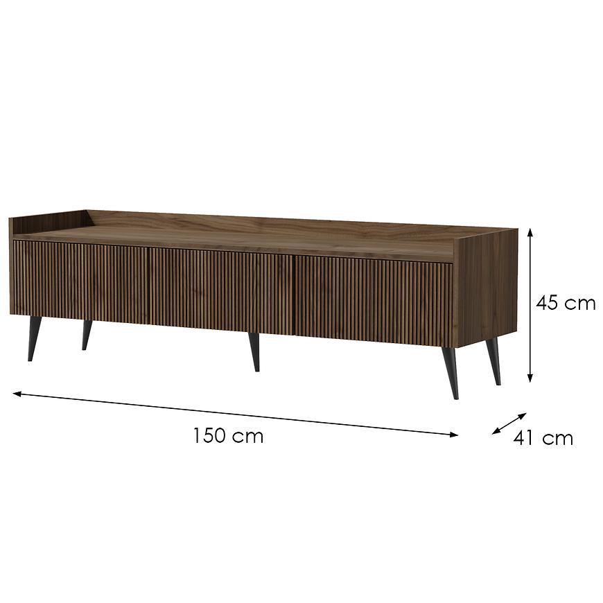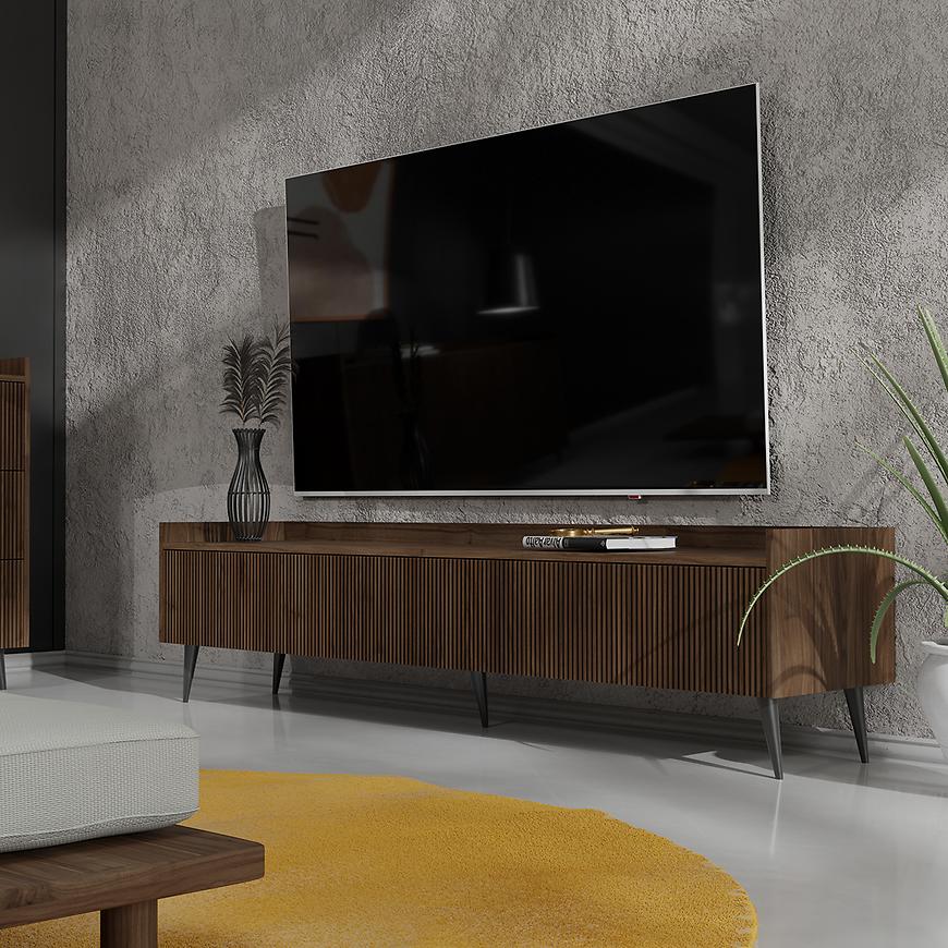 Szafka RTV Ademo 6 w kolorze orzecha to stylowy mebel, który świetnie sprawdzi się jako centralny punkt w salonie. Ciepła, naturalna kolorystyka orzecha nadaje wnętrzu przytulności i elegancji, a ponadczasowy design sprawia, że pasuje zarówno do klasycznych, jak i nowoczesnych aranżacji.