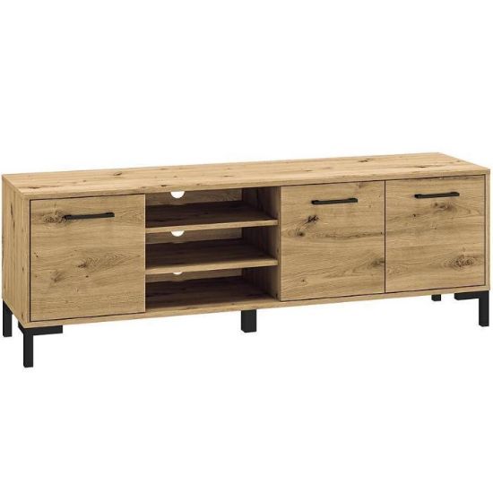 Szafka RTV Nevio 20 łączy estetykę z praktycznością. Trzydrzwiowa konstrukcja oferuje przestrzeń na sprzęt RTV, konsole, piloty i inne akcesoria. Neutralny kolor dąb artisan w połączeniu z matowym wykończeniem frontów podkreśla elegancję wnętrza i nadaje mu przytulny charakter. Lekka konstrukcja i samodzielny montaż pozwalają na łatwe dostosowanie mebla do potrzeb salonu.