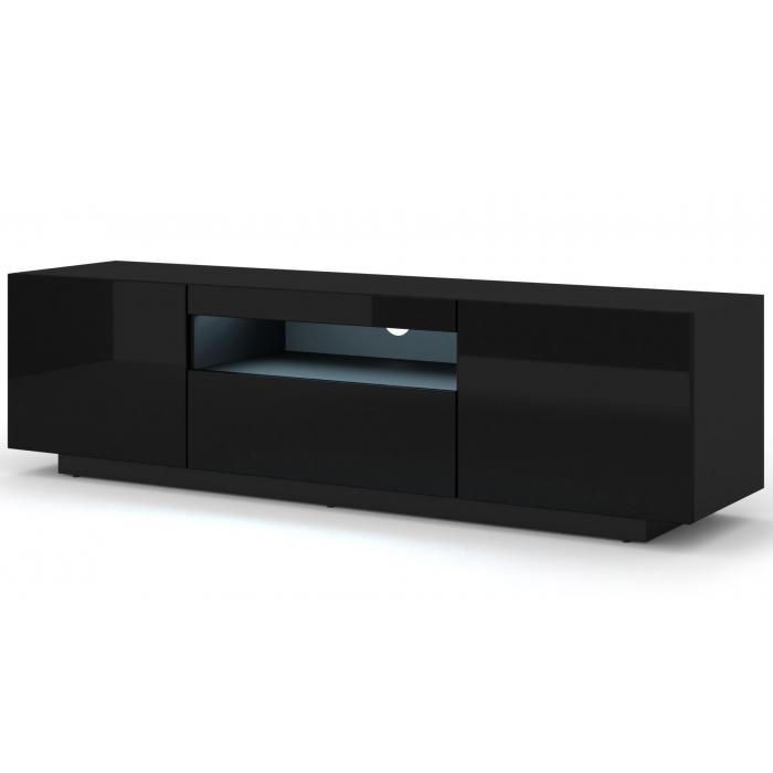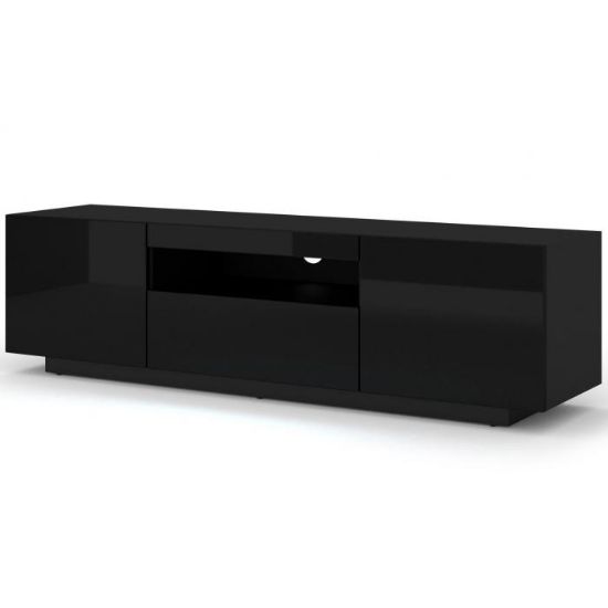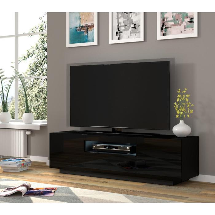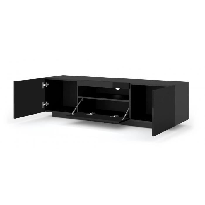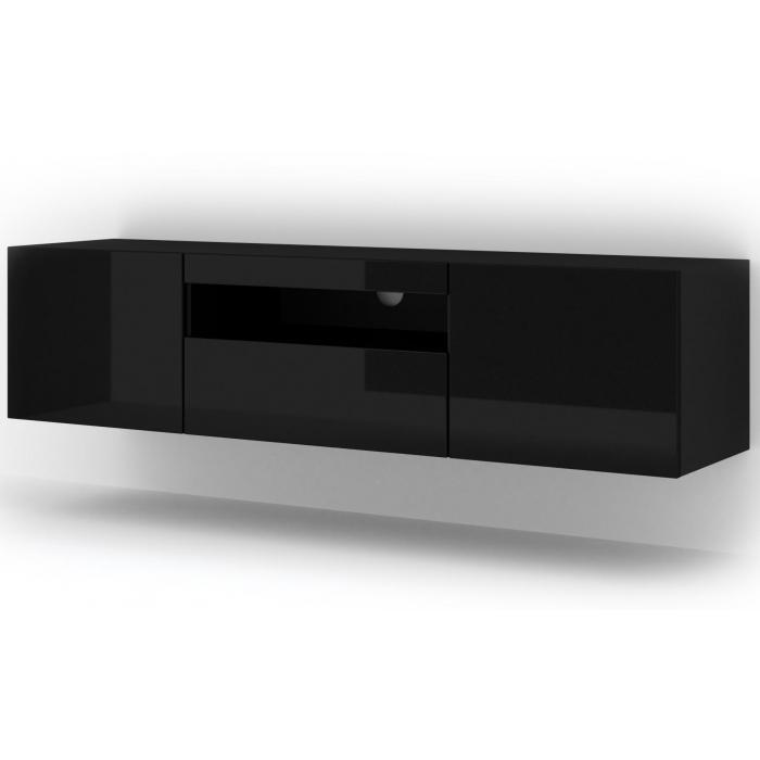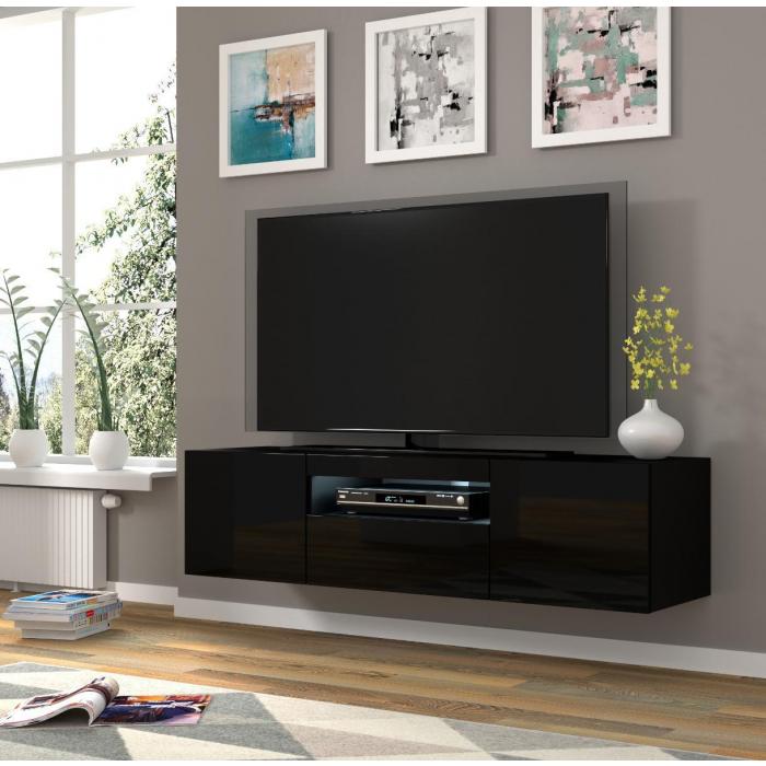 Szafka rtv jest uniwersalna , gdyż może być stojąca wysokość 42 cm lub wisząca przymocowana do ściany wysokość 36 cm, możliwość wyboru przy montażu. Posiada dwie zamykane półki otwierane na boki, jedną zamykaną półką otwieraną do dołu, a także otwór na kable.