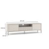 Praktyczny układ wnętrza obejmuje pojemną szufladę, idealną na drobne akcesoria, oraz dwie zamykane szafki, które pomieszczą sprzęt RTV, książki lub inne przedmioty. Otwarta półka z otworem na kable umożliwia wygodne podłączenie sprzętu, zachowując estetykę wnętrza bez widocznych przewodów. Stabilność i lekkość konstrukcji zapewniają metalowe, kaszmirowe nogi o wysokości 13,5 cm, które doskonale wpisują się w nowoczesne i loftowe aranżacje. Bezuchwytowe fronty nadają szafce minimalistyczny charakter, a metalowe zawiasy z możliwością regulacji gwarantują wygodne i trwałe użytkowanie.