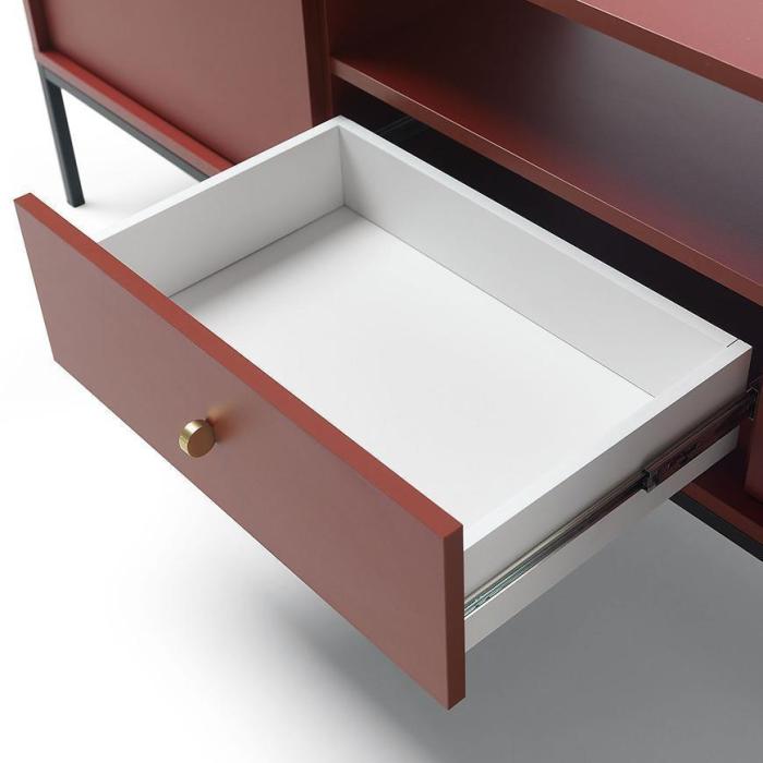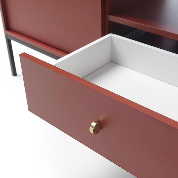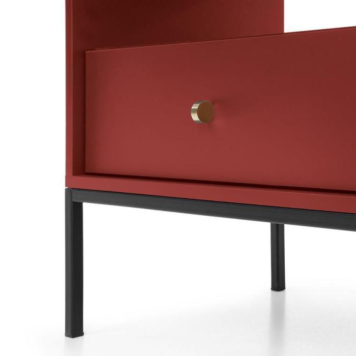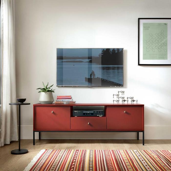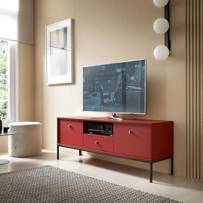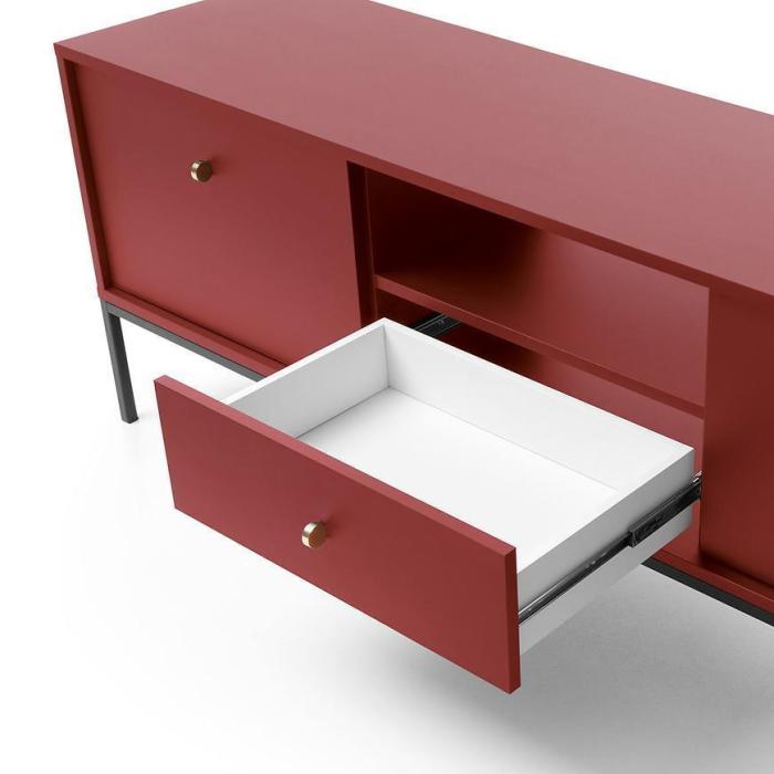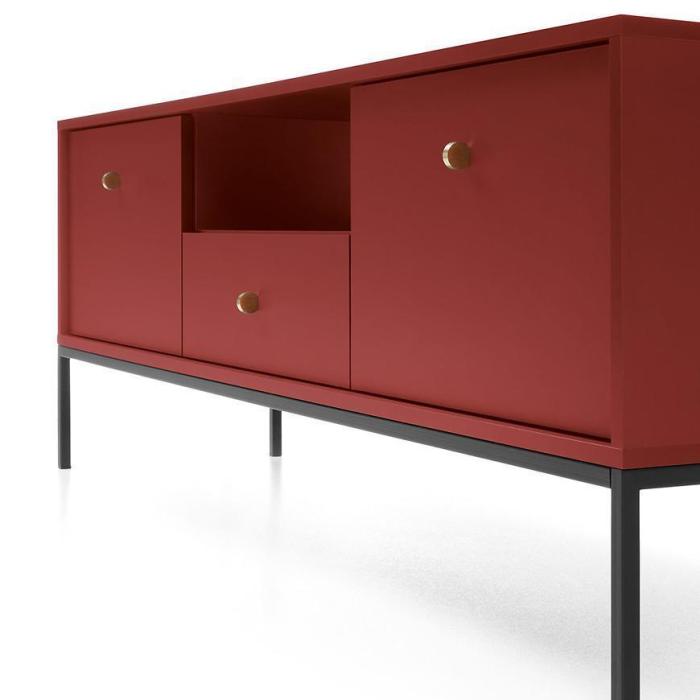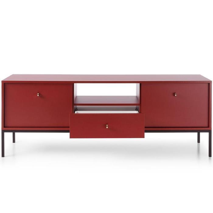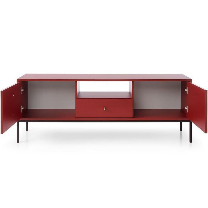 Szafka RTV z kolekcji Mono posiada dwie szafki z uchylnymi drzwiami, jedną półkę oraz jedną wysuwaną szufladę. Komoda może być świetnym uzupełnieniem aranżacji w salonie.