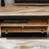 Całość została zaprojektowana z dbałością o detale – frezowane krawędzie, subtelne uchwyty i solidne wykończenia nadają meblom wyjątkowego charakteru. Kolekcja obejmuje między innymi komody, witryny, szafki RTV, półki i stoliki kawowe, co pozwala na pełne umeblowanie salonu w jednym, spójnym stylu.