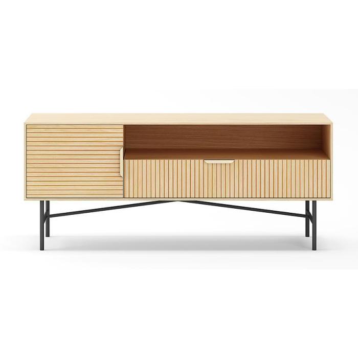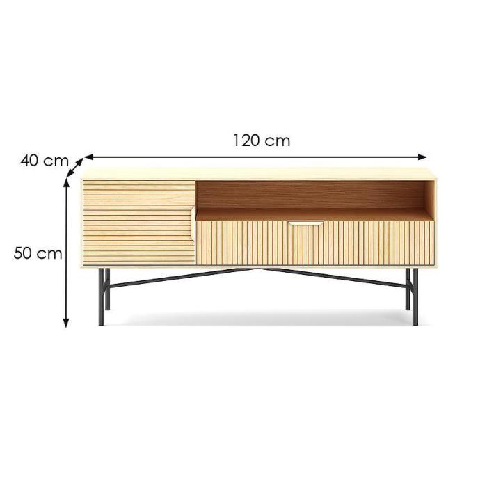 Szafka RTV Bassel w kolorze naturalnym świetnie prezentuje się w nowoczesnych wnętrzach. Doskonale sprawdzi się w każdym salonie lub innym, dowolnym pomieszczeniu.