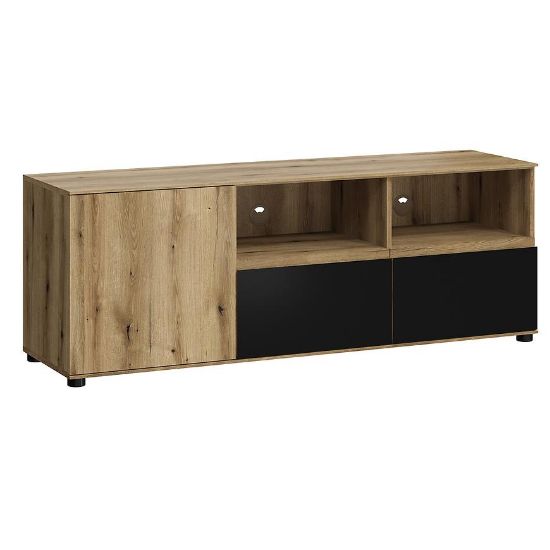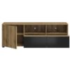 Jednodrzwiowa konstrukcja oraz dwie pojemne szuflady zapewniają odpowiednią ilość miejsca do przechowywania, a jednocześnie pozwalają na utrzymanie porządku i estetyki w strefie rozrywki. Jej nowoczesny design i praktyczność doskonale współgrają z różnorodnymi aranżacjami wnętrz, od minimalistycznych po bardziej industrialne.
