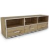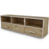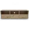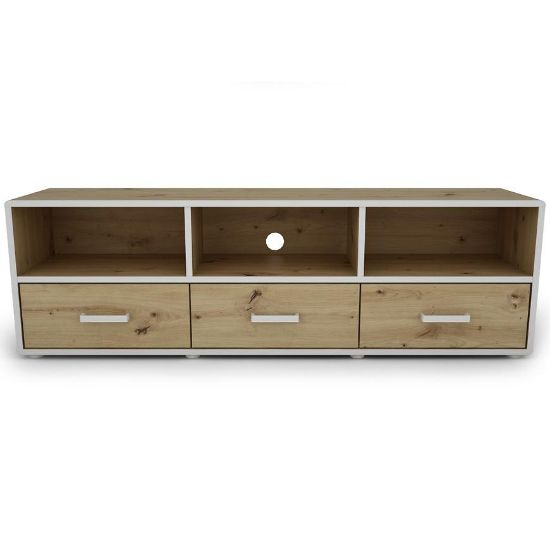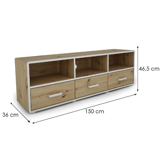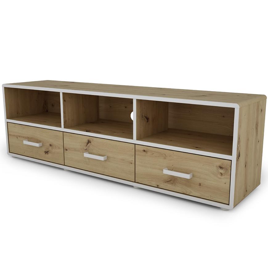Trzy szuflady szafki RTV to odpowiedź na Twoje potrzeby przechowywania. Bez problemu pomieszczą różnorodne przedmioty, od pilotów i akcesoriów po ulubione filmy czy gry. Dzięki temu unikniesz zagraconego wyglądu, utrzymując strefę rozrywki w porządku.