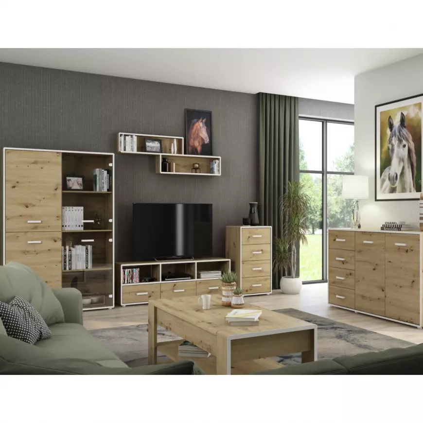 Szafka RTV w kolorze dąb artisan/biały to esencja stylu nowoczesnego, która wnosi do Twojego wnętrza wyrafinowanie oraz praktyczność. Jeśli marzysz o meblu, który nie tylko dopełni funkcje centrum rozrywki, ale także przyczyni się do estetyki przestrzeni, ta szafka z pewnością Cię zachwyci.