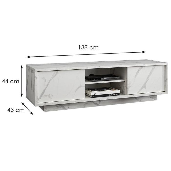 Szafka RTV Carrara to mebel utrzymany w stylu nowoczesnym, który świetnie sprawdzi się w większości wnętrz. Mebel może być doskonałym uzupełnieniem aranżacji w każdym salonie lub pokoju dziennym. Moduł wykonano z płyty MDF w kolorze biały marmur.