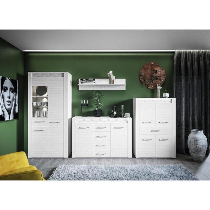Kolekcja Clermont to zbiór wyjątkowych mebli do pokoju dziennego, które zachwycają swoim wyrafinowanym urokiem sosny śnieżnej i harmonią stylu, łącząc nowoczesne wzornictwo z klasyczną elegancją. Wykonane z trwałej płyty wiórowej laminowanej i MDF, meble tej kolekcji nie tylko przyciągają uwagę swoim estetycznym designem, ale również są solidne i praktyczne w użytkowaniu.