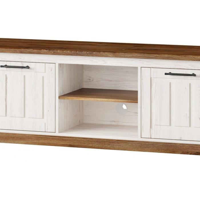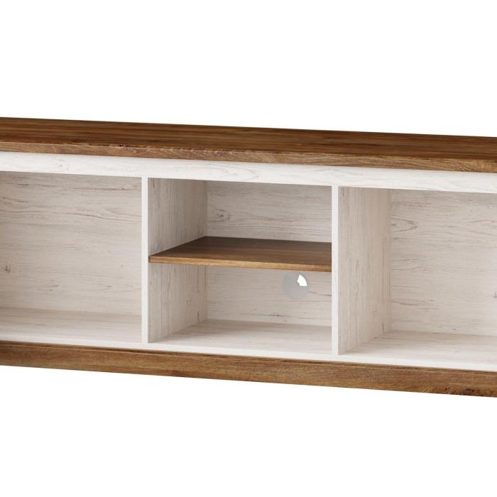 Szafka rtv Country 25 w nietypowym wydaniu kolekcji Country. Jeśli marzysz o wnętrzu w stylu prowansalskim, jeśli lubisz klasyczne bryły i zdobienia to ta kolekcja jest właśnie dla Ciebie. Niezwykle stylowy mebel, który sprawdzi się w pomieszczeniach w stylu prowansalskim oraz klasycznym. Idealna kompozycja kolorystyczna dębu stirling z sosną andersen nadaje meblowi lekkości. Szafka rtv posiada uniwersalne drzwi - dzięki czemu pasuje do każdego salonu lub jadalni.