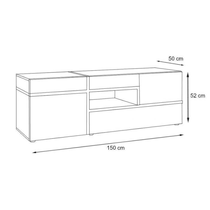 Szafka RTV dwudrzwiowa z szufladą i oświetleniem LED, zapewniająca miejsce na sprzęt multimedialny oraz efektowne podświetlenie ekspozycji.