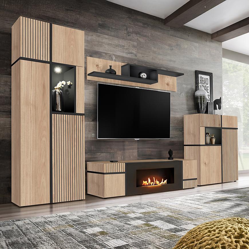 Zestaw mebli Cross stworzono z myślą o nowoczesnych przestrzeniach, w których liczy się zarówno design, jak i komfort codziennego życia. W skład kolekcji wchodzą: komoda dwudrzwiowa z dwiema szufladami, szafka RTV dwudrzwiowa z biokominkiem, szafka RTV dwudrzwiowa z jedną szufladą, witryny wysokie z oświetleniem LED w standardzie oraz półka wisząca. Każdy element został zaprojektowany tak, aby tworzyć spójną, harmonijną całość, idealną do aranżacji nowoczesnego pokoju dziennego.