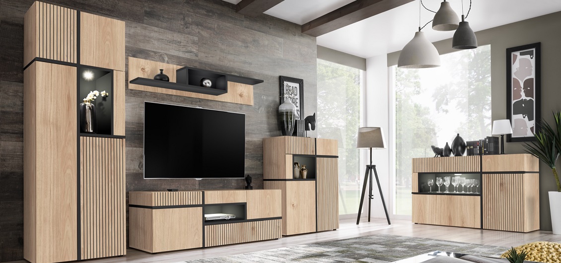 Kolekcja Cross – nowoczesne meble do pokoju dziennego w kolorze czarny/hickory jackson