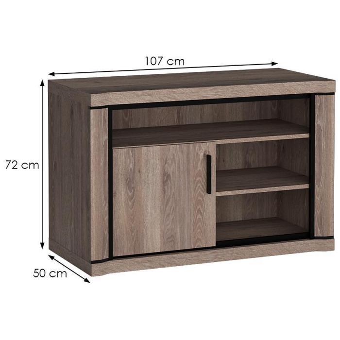 Szafka RTV Dallas D11 w kolorze dąb truflowy idealnie sprawdzi się w salonie, pokoju dziennym czy w innym, dowolnym pomieszczeniu. Posiada dużo miejsca do przechowywania. Dodatkowe czarne elementy nadadzą nowoczesny styl wnętrzu. Całość została wykonana z płyty wiórowej laminowanej.