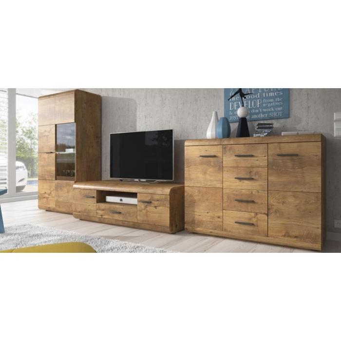 Korpus i fronty Systemu Elen wykonane są w wybarwieniu kasztana wrocławskiego. Uchwyty mebli są platikowe w kolorze czarnym. Kolekcja doskonale sprawdzi się w pokoju dziennym lub salonie.