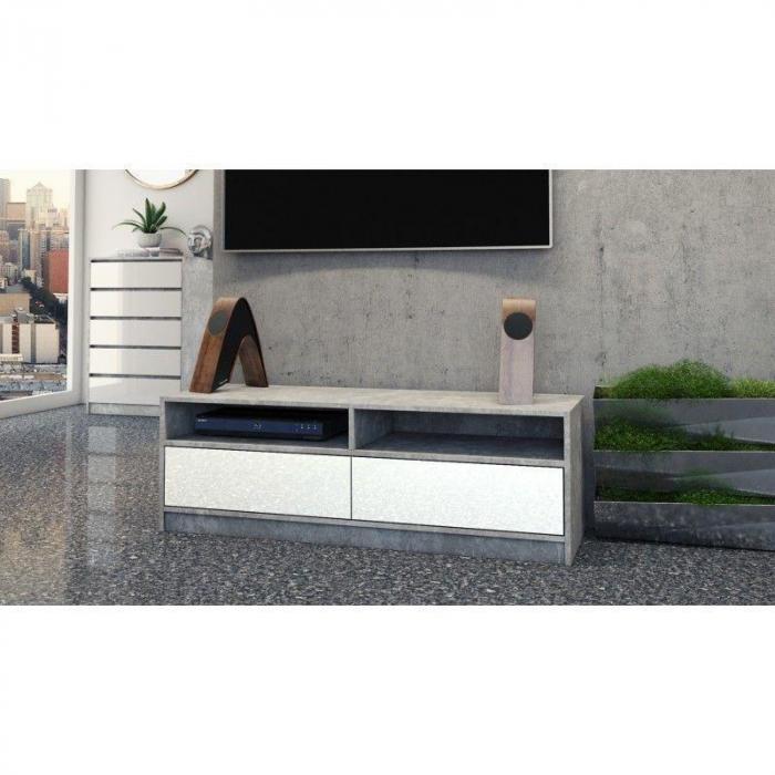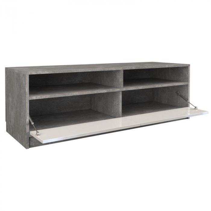 Szafka RTV z serii Elia to dodkonały mebel dla osób ceniących sobie proste i eleganckie rozwiązania. Szafka posiada dwa funkcjonalne i pojemne schowki oraz dwie szerokie, otwarte półki pozwalające na umieszczenie sprzętu RTV. Mebel zawiera lakierowane fronty i matowy korpus. Szafka posiada drzwiczki, które można otworzyć i zamknąć poprzez ich naciśnięcie. Drzwiczki otwierają się na dół. Może posłużyć jako stolik pod telewizor, miejsce do przechowywania sprzętu audio video, a także jako dodatkowy schowek w salonie na drobne przedmioty użytku codziennego. Prosta konstrukcja gwarantuje łatwość montażu oraz niezawodność w użytkowaniu. Mebel został wykonany w wysokiej jakości materiałów.