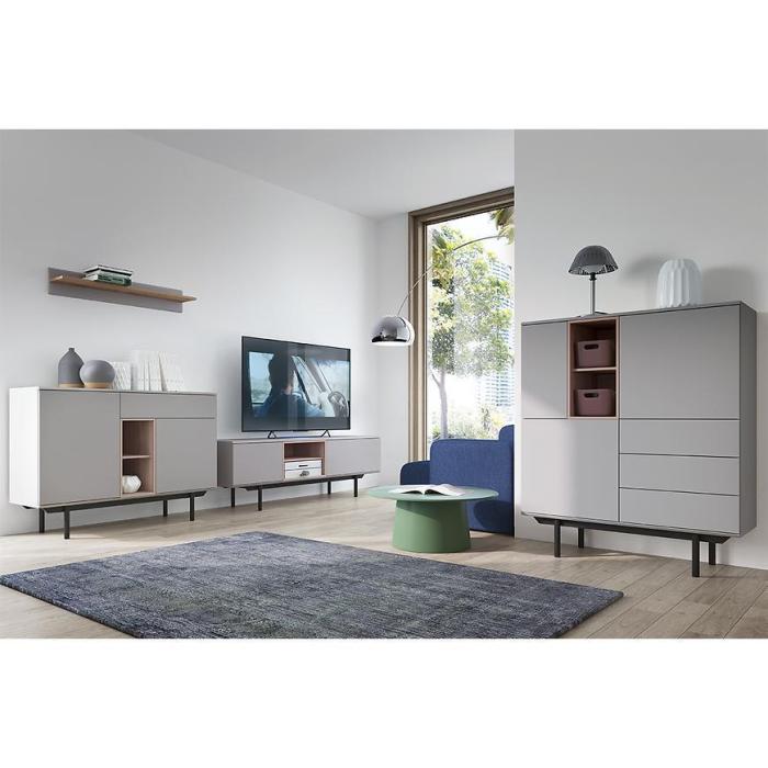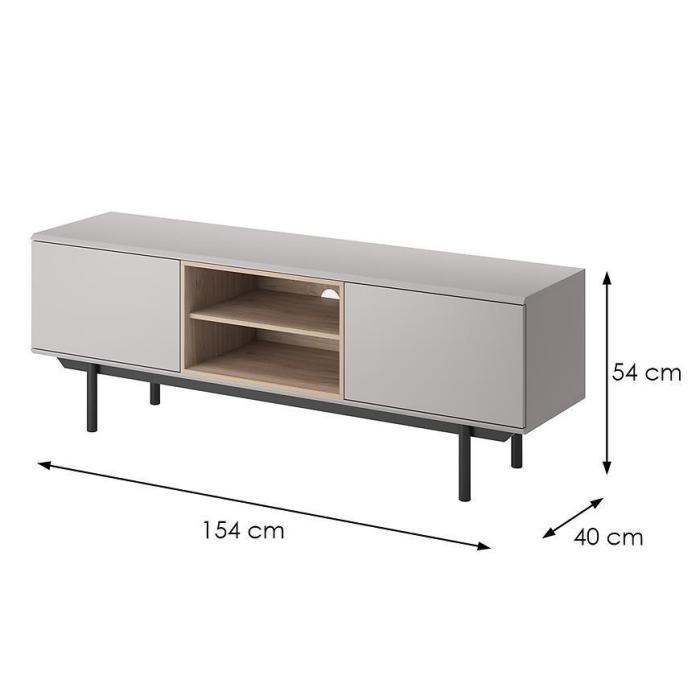 Szafka RTV Inox w kolorze szary/jackson hickory świetnie prezentuje się w nowoczesnych wnętrzach. Doskonale sprawdzi się w każdym salonie lub innym, dowolnym pomieszczeniu. Wykonana jest z płyty wiórowej laminowanej.