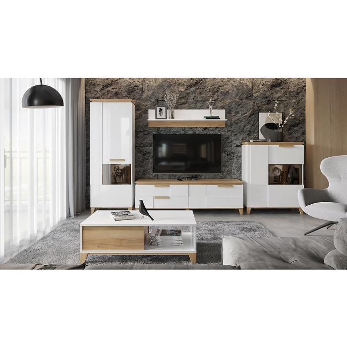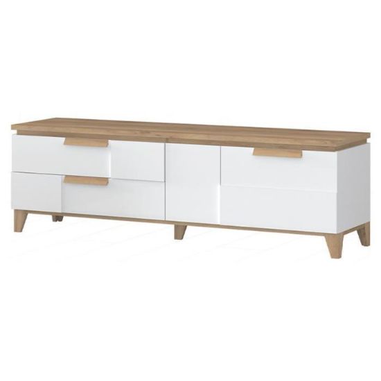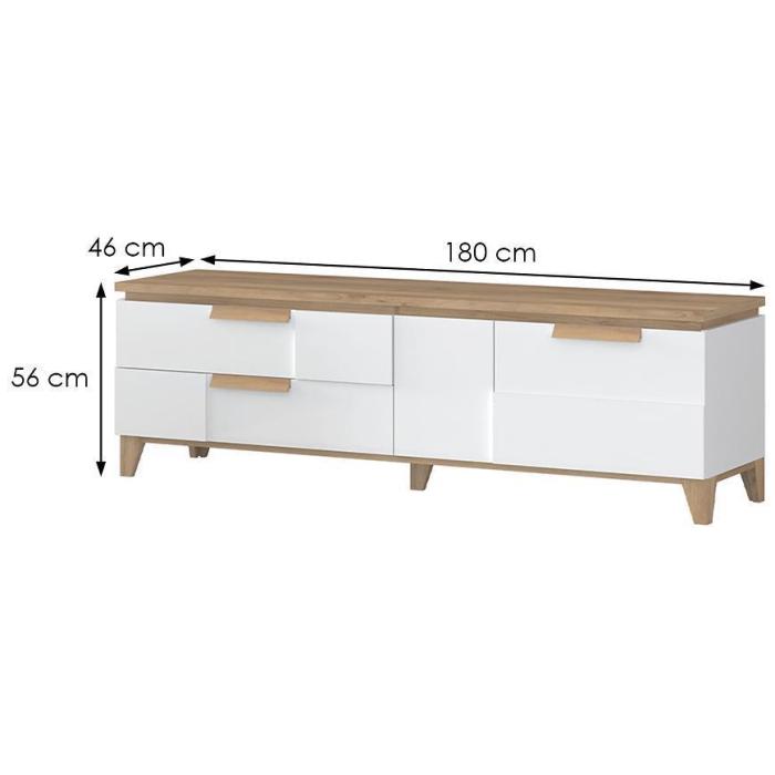 Kolekcja Brio w kolorze pacific walnut/crystal white świetnie prezentuje się w nowoczesnych wnętrzach. Szafka rtv doskonale sprawdzi się w każdym salonie lub innym, dowolnym pomieszczeniu. Wykonana jest z płyty wiórowej lakierowanej/wiórowej laminowanej.