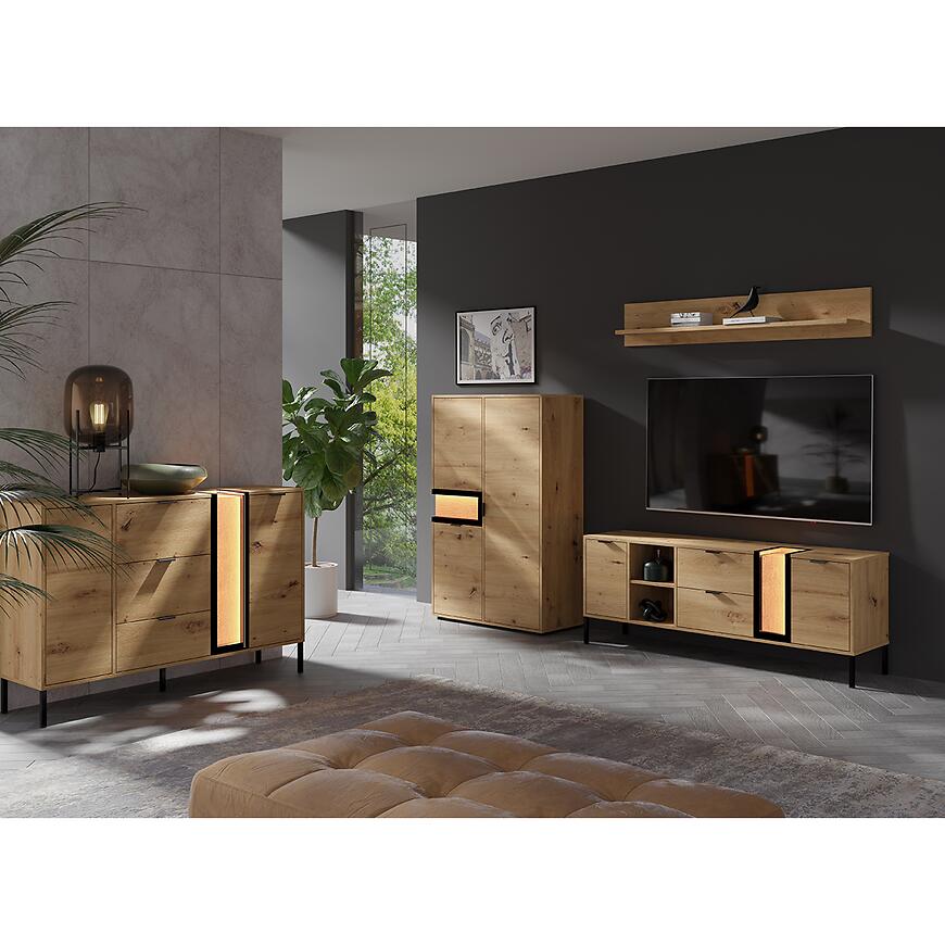 Szafka RTV Evolution Długa Ev/4a Artisan/Wood łączy nowoczesny wygląd z funkcjonalnym wnętrzem. Jasne wybarwienie dąb artisan, matowe fronty oraz solidna konstrukcja zapewniają trwałość i wygodę użytkowania przez wiele lat. Duża powierzchnia mebla pozwala na ustawienie większego sprzętu RTV, jednocześnie zachowując estetyczny i uporządkowany wygląd wnętrza.