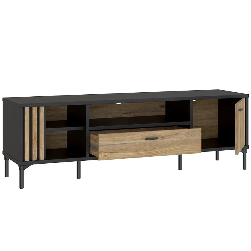 Szafka RTV Figila prezentuje się imponująco, a jednocześnie jej proporcjonalne wymiary pozwalają na optymalne umieszczenie sprzętu RTV i innych niezbędnych elementów.