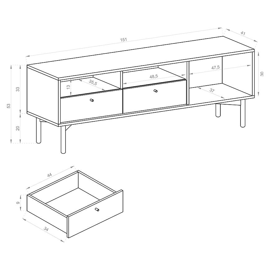 Dzięki harmonijnemu połączeniu kolorów Dębu Artisan i Czarnego Perlistego, szafka prezentuje się wyjątkowo stylowo i efektownie. Jej prostokątny kształt i solidna konstrukcja zapewniają stabilne podparcie dla telewizora oraz wystarczająco miejsca na przechowywanie różnych urządzeń elektronicznych i mediów.