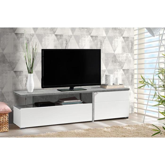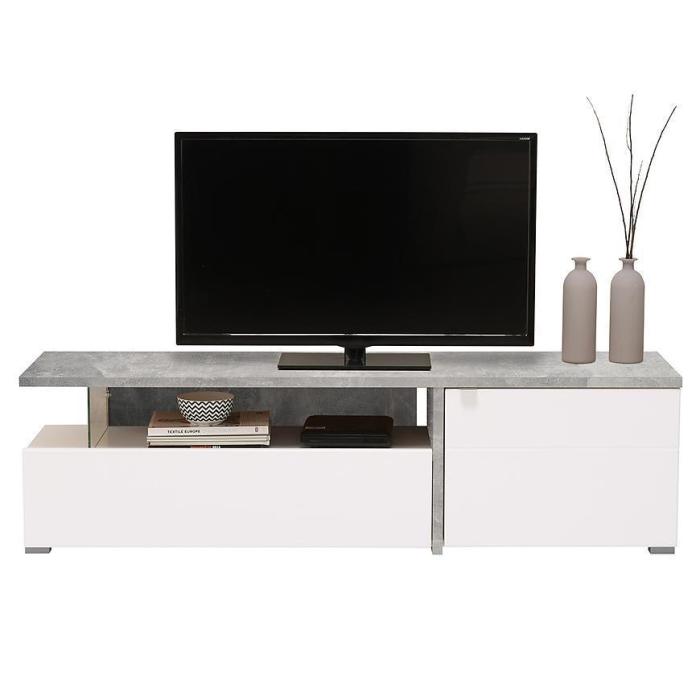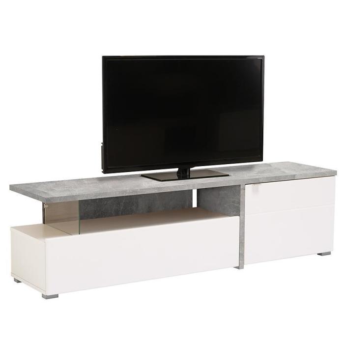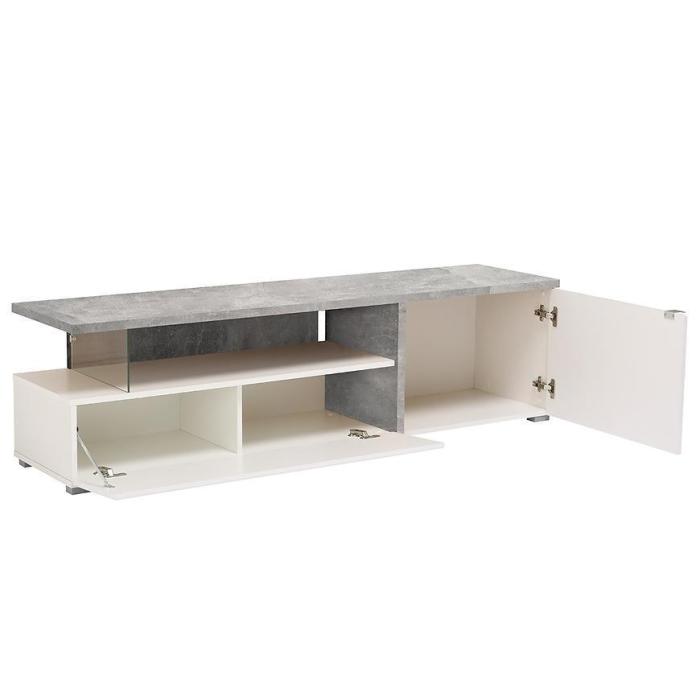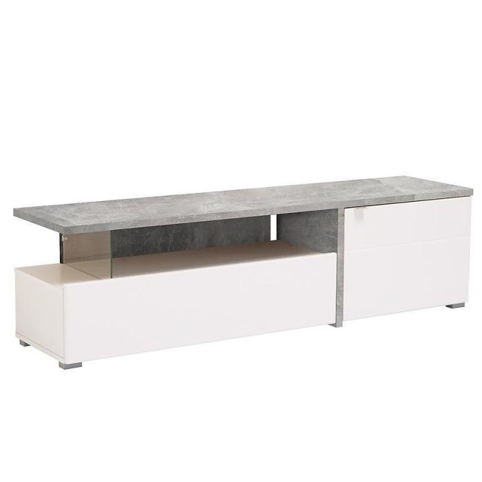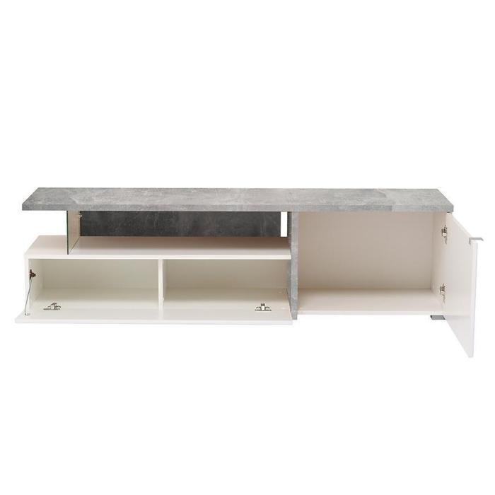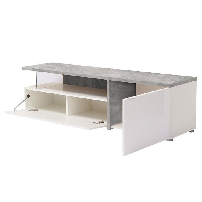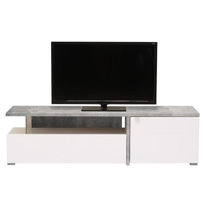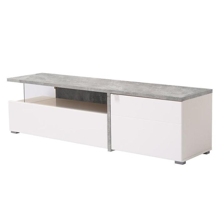 Szafka RTV posiada dwie szafki z uchylnymi drzwiami i otwartą półkę. Komoda może być świetnym uzupełnieniem aranżacji w salonie i w pokoju młodzieżowym.