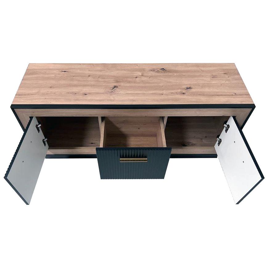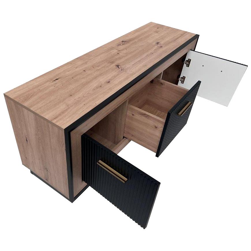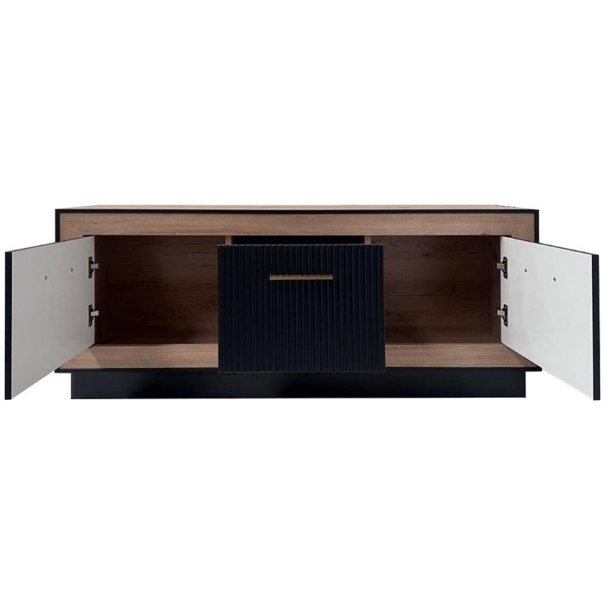 Szafka RTV Fox 4 artisan to nowoczesny i funkcjonalny mebel, który stworzy doskonałą aranżację w Twoim wnętrzu. Jej ciemne drewnopodobne wybarwienie oraz matowe, czarne fronty nadają szafce stylowego charakteru z nutką elegancji.