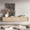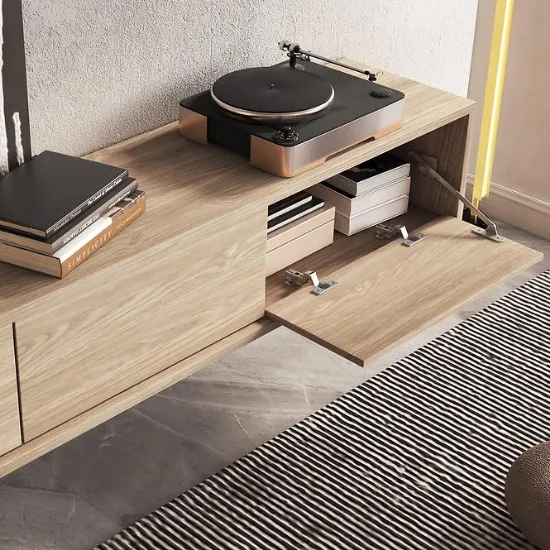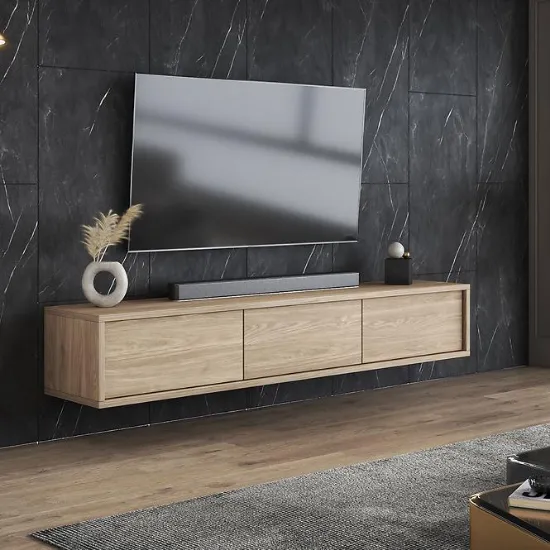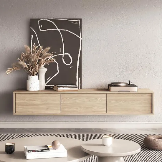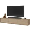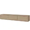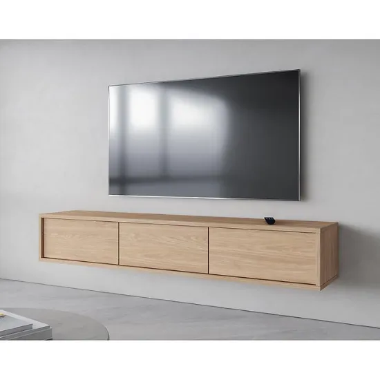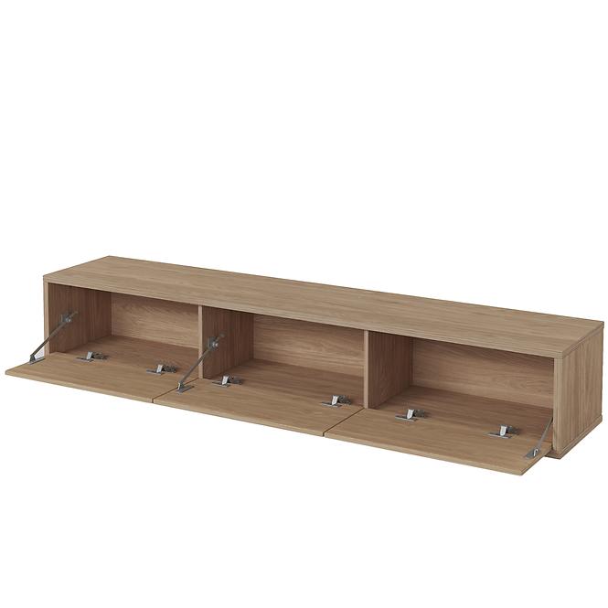 Szafka Frida wyróżnia się opcją podwieszania, co czyni ją nie tylko efektownym, ale i praktycznym elementem wyposażenia. Uniesiona nad ziemią, zapewnia wizualną lekkość i pozwala na swobodne wykorzystanie przestrzeni pod nią – idealne rozwiązanie do salonów, w których liczy się każdy centymetr. Przestronne wnętrze szafki stwarza idealne warunki do przechowywania sprzętu multimedialnego, kabli oraz akcesoriów, pomagając w utrzymaniu porządku wokół telewizora.