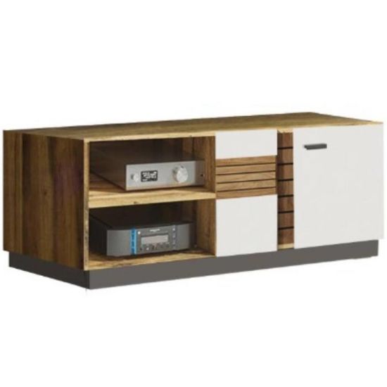 Szafka RTV Gardena w kolorze latte/ciemny orzech to mebel utrzymany w stylu nowoczesnym, który świetnie sprawdzi się w większości wnętrz.