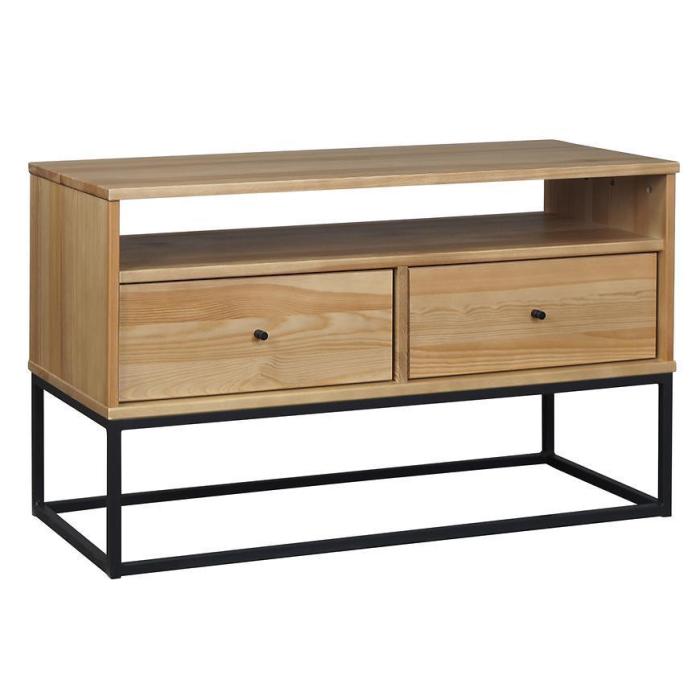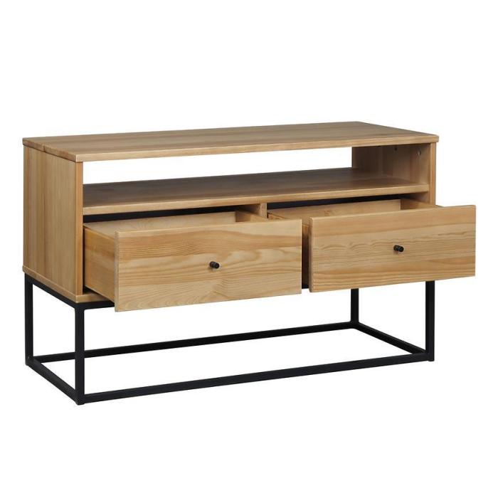 Szafka RTV LOGAN w kolorze jasnym drewnopodobnym świetnie prezentuje się we wnętrzach modernistycznych i w stylu loftowym. Doskonale sprawdzi się w każdym salonie lub innym, dowolnym pomieszczeniu. Wykonana jest z drewna o solidnej i trwałej konstrukcji.
